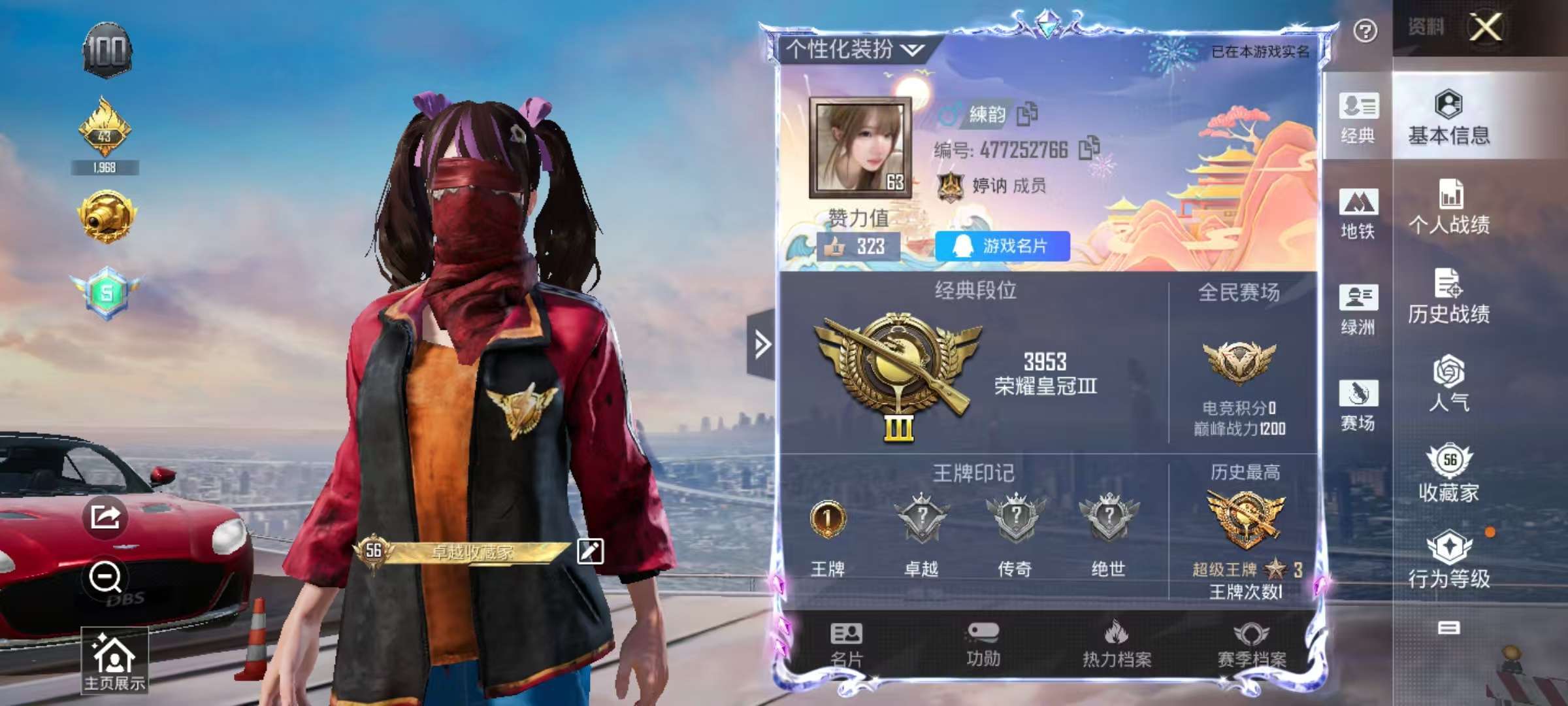 安卓 手Q-3粉装-8特效枪-0载具-0粉色飞行器-56860热力值-8王牌印