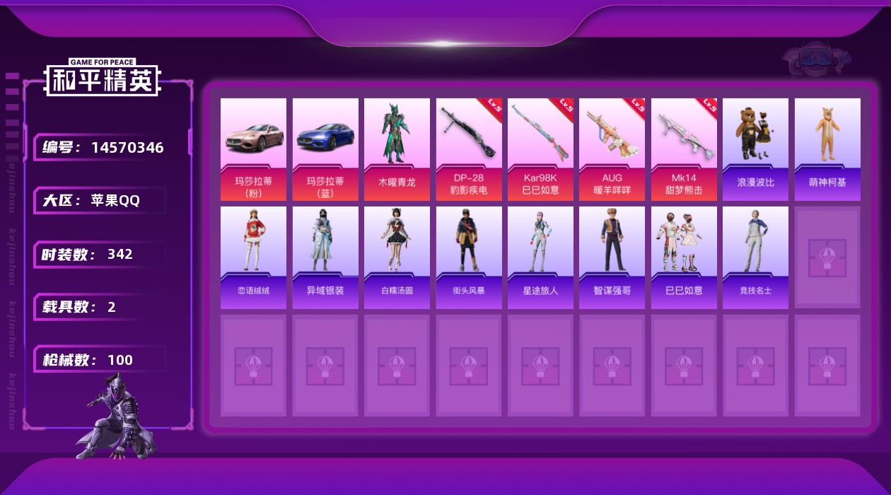 hs39582 苹果手Q-9王牌印记-3粉装-3特效枪-2载具-47335热力值-106套装-146