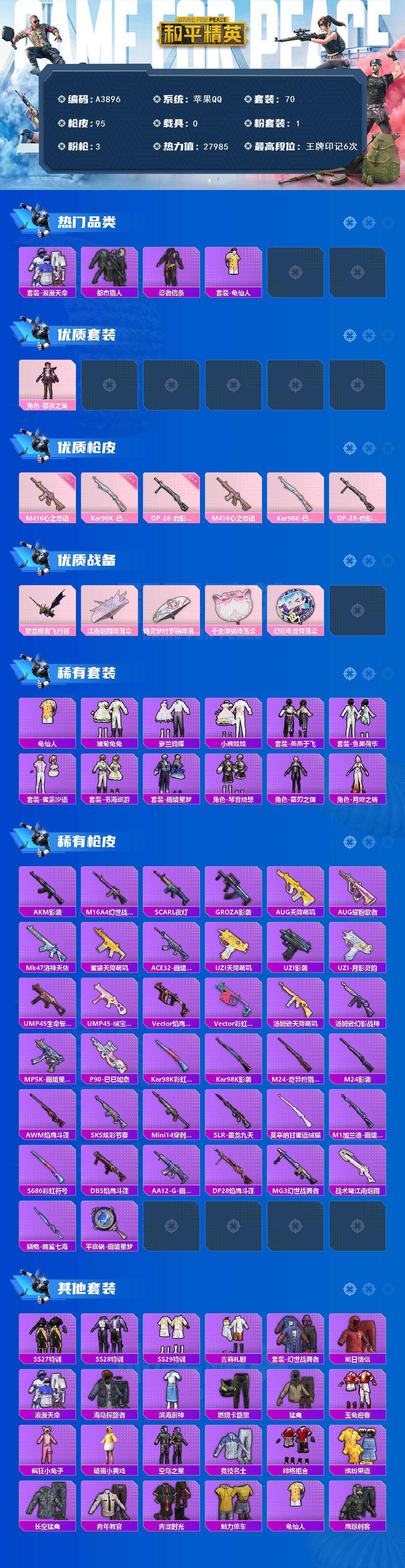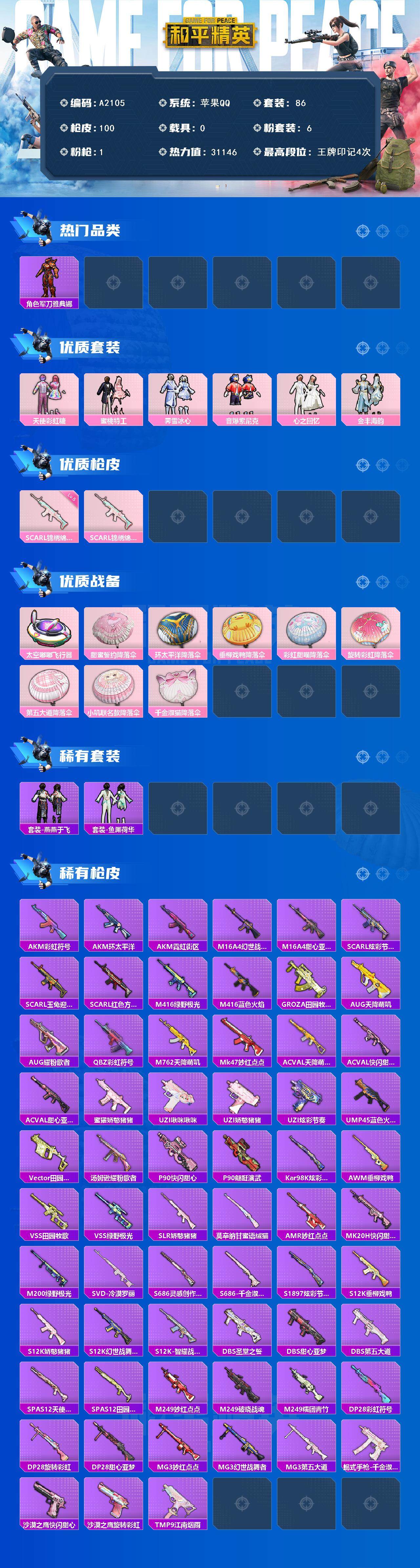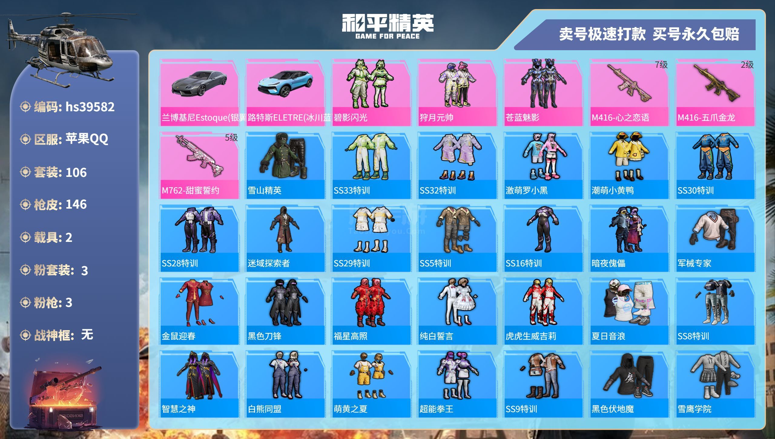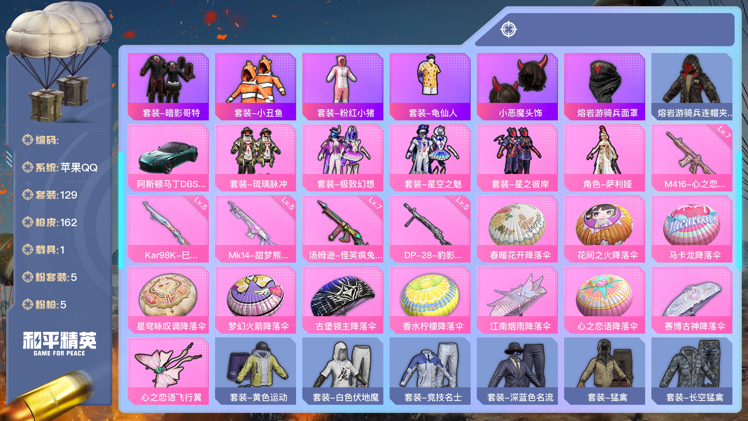 hs39582 苹果手Q-9王牌印记-3粉装-3特效枪-2载具-47335热力值-106套装-146