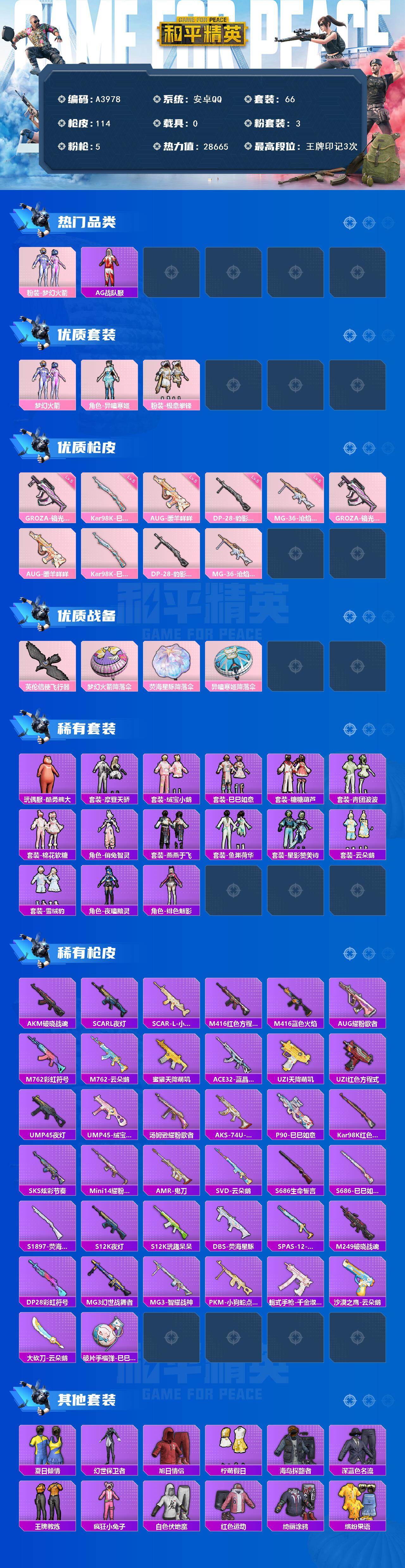 安卓Q-1载具2粉装5特效枪3热门70套装105枪皮 29312热力值 10印记 历史传奇王牌12星