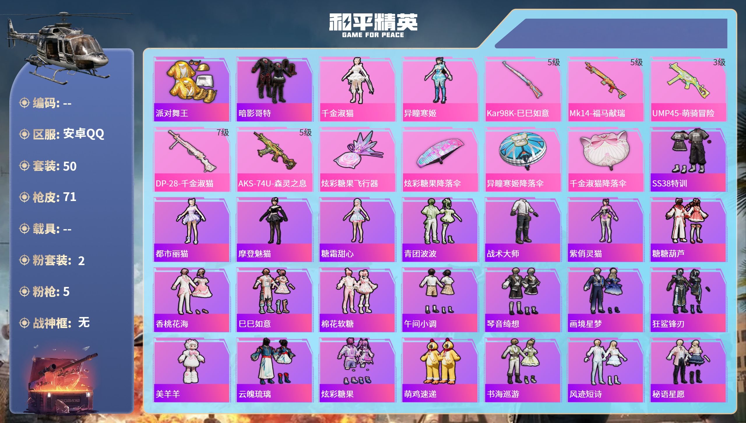 【5印记4粉装4特效枪可秒换绑】 安卓Q区-39368热力值-5印记-118套装