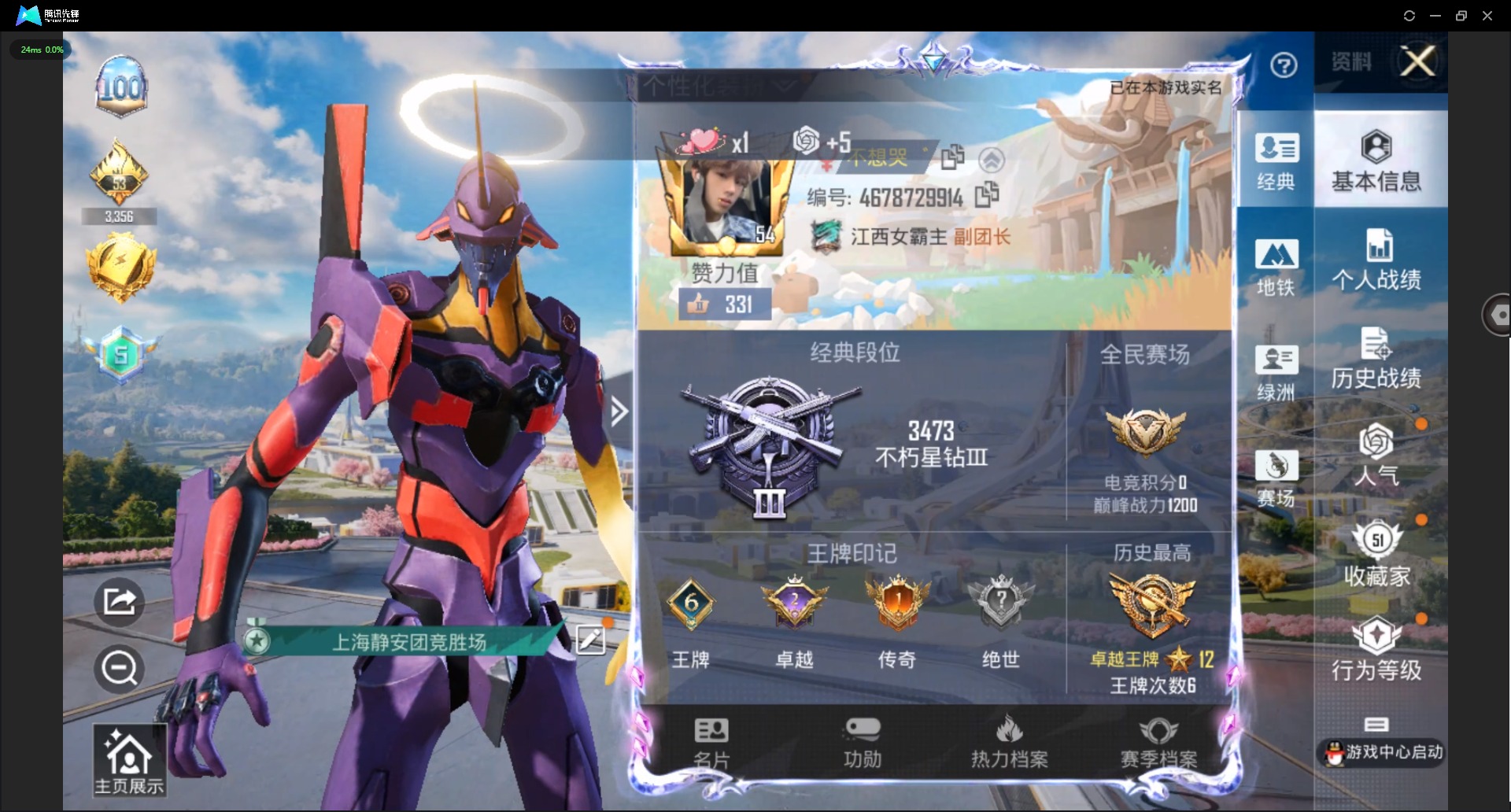 3粉装-6特效枪-0载具-0粉色飞行器-65327热力值-6王牌印记-158套装-218枪皮