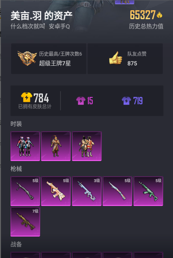 安卓 手Q-7粉装-3特效枪-1载具-热力值-1印记-75套装-116枪皮