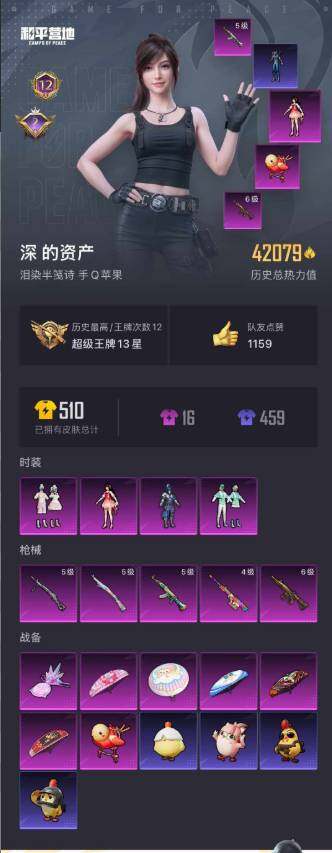 苹果 手Q-1粉装-6特效枪-0载具-0粉色飞行器-35207热力值-6王牌印