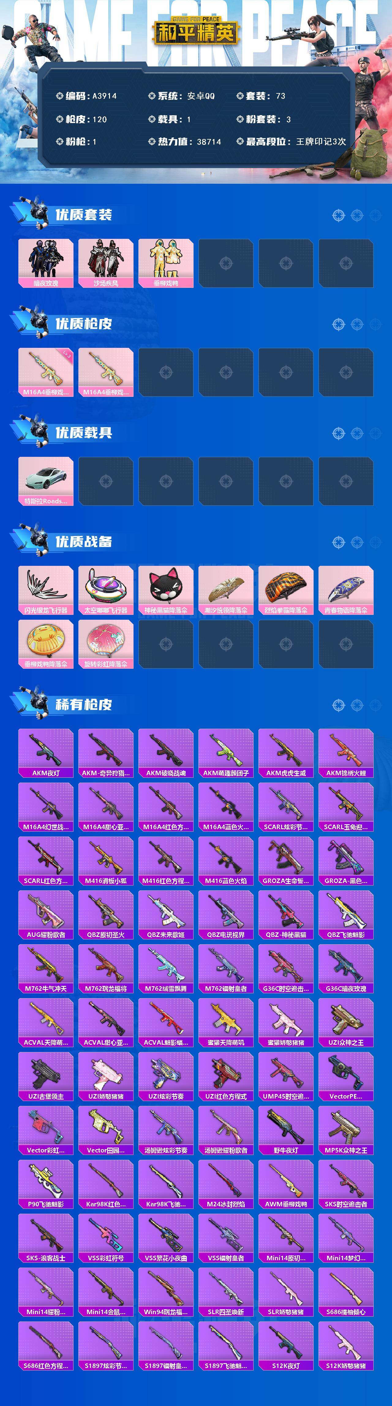 8王牌印记-2粉装-4特效枪-1载具-44265热力值-89套装-138枪皮-3卓越印记-1传奇印记
