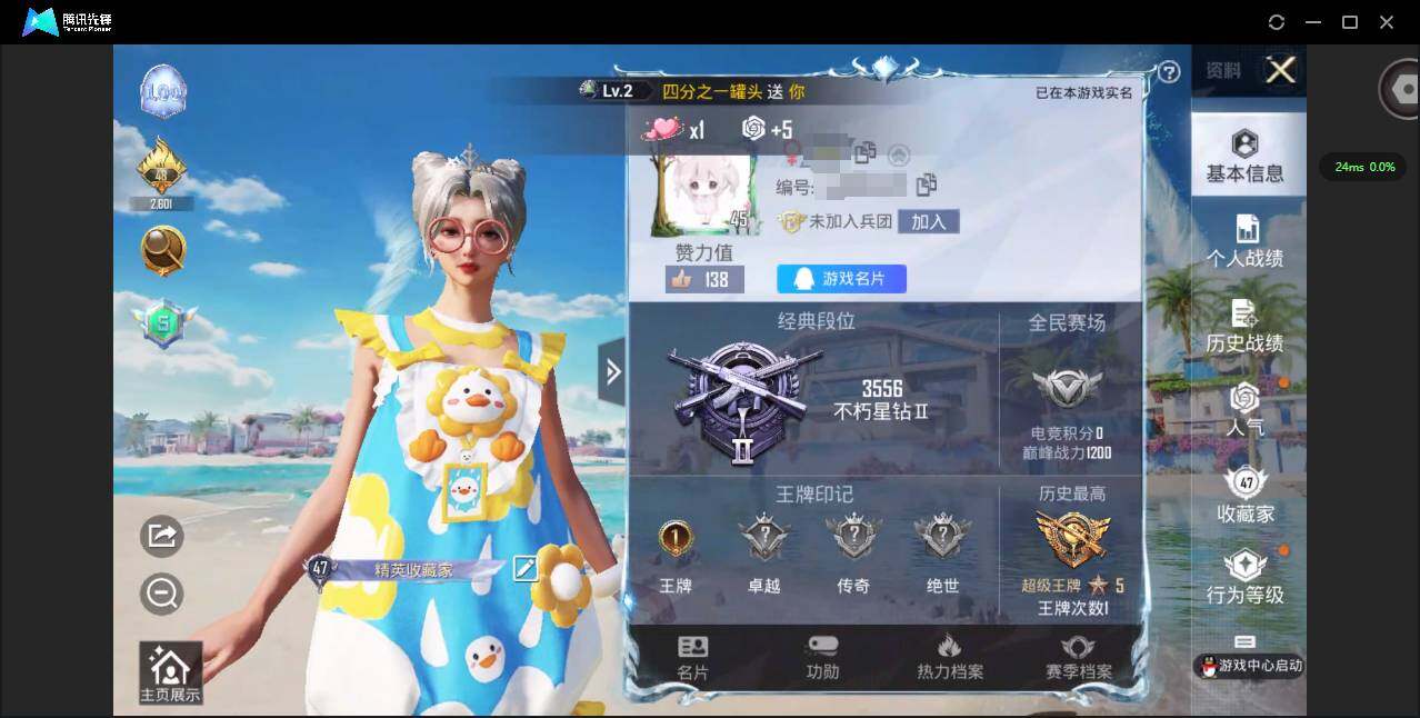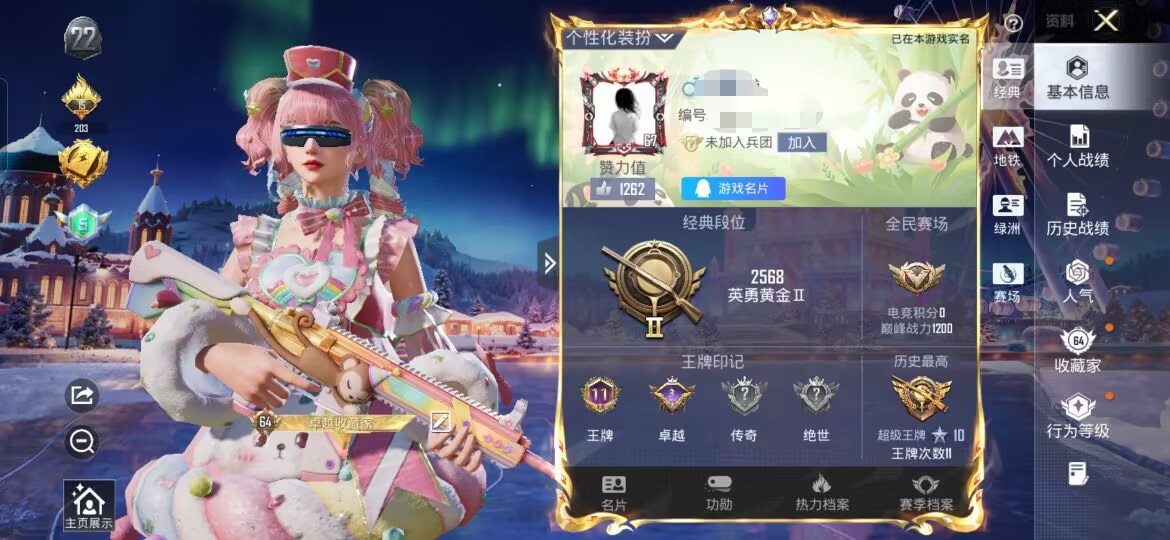 实名: 可修改 时装数: 83 枪械数: 111 战备数: 66 热门装扮: