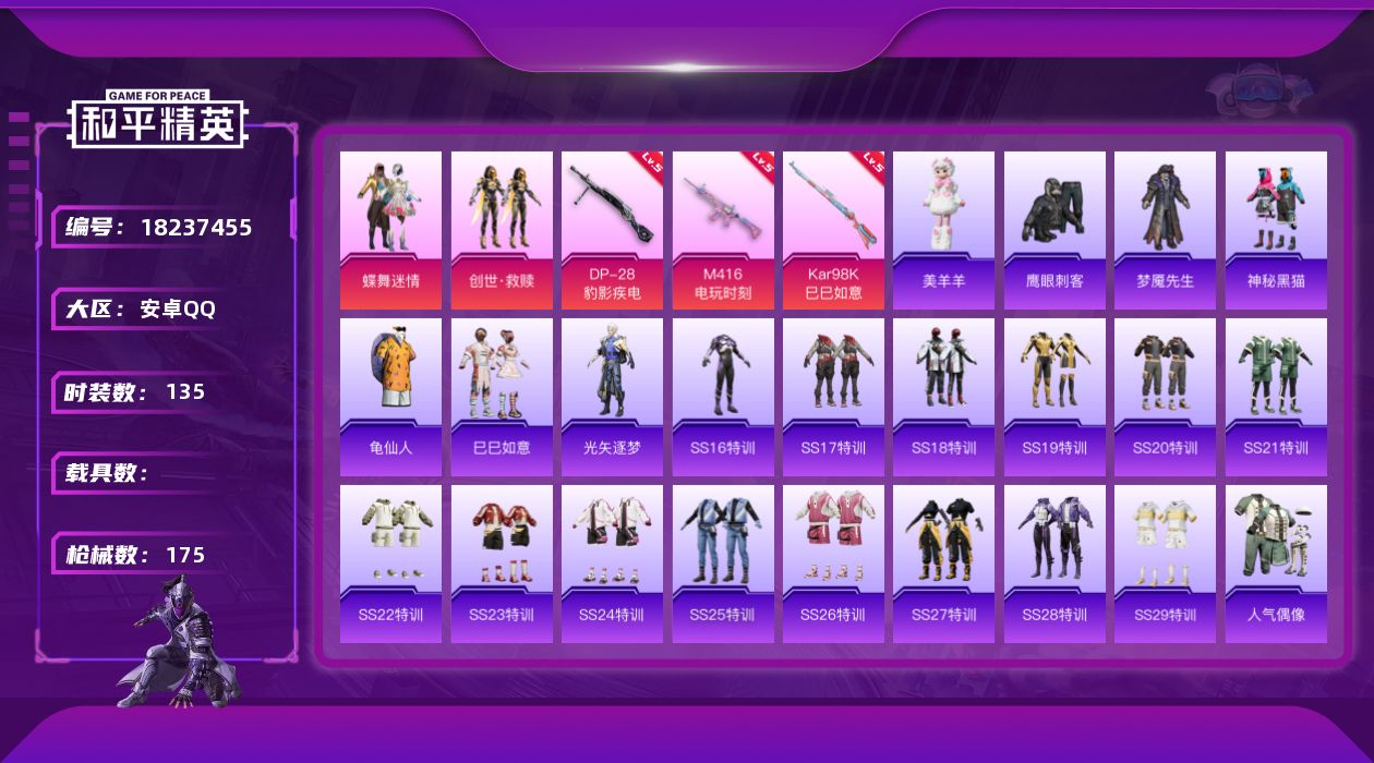 hs63242 安卓手Q-5王牌印记-3粉装-7特效枪-37671热力值-114套装-134枪皮-2