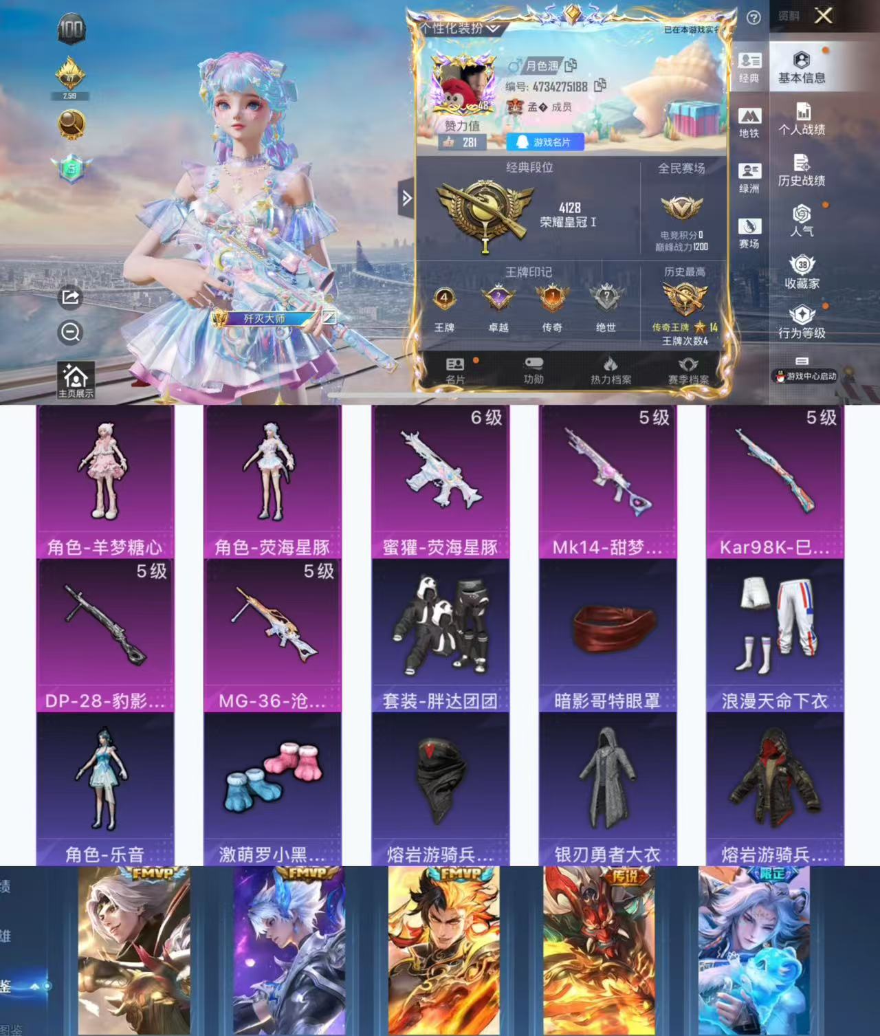DSH1736【3载具3粉装2特效枪】安卓Q-58754热力值 6王牌印记 历史超级王牌8星 149