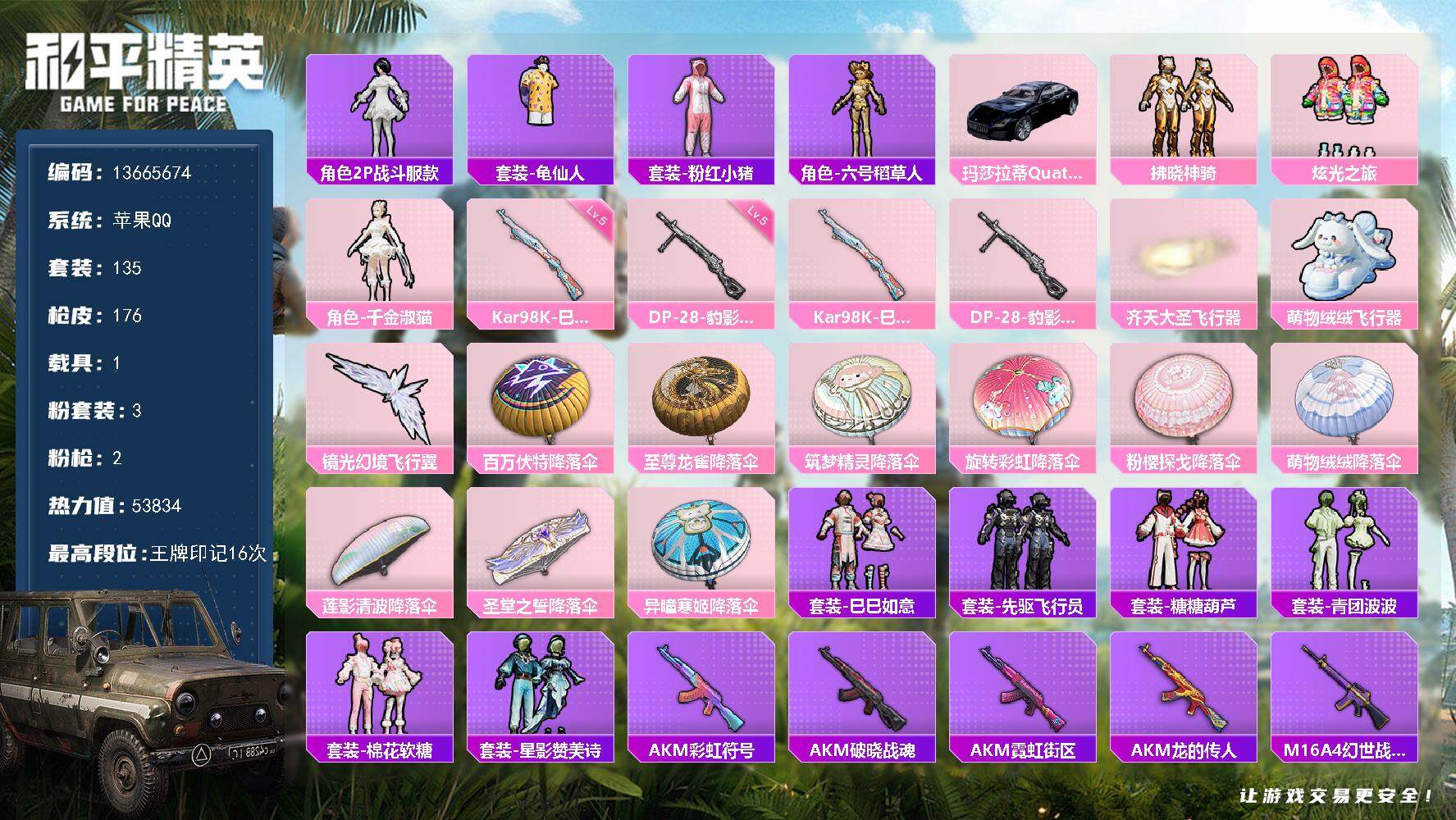 hs47928 苹果手Q-8王牌印记-3粉装-5特效枪-1载具-56589热力值-136套装-183