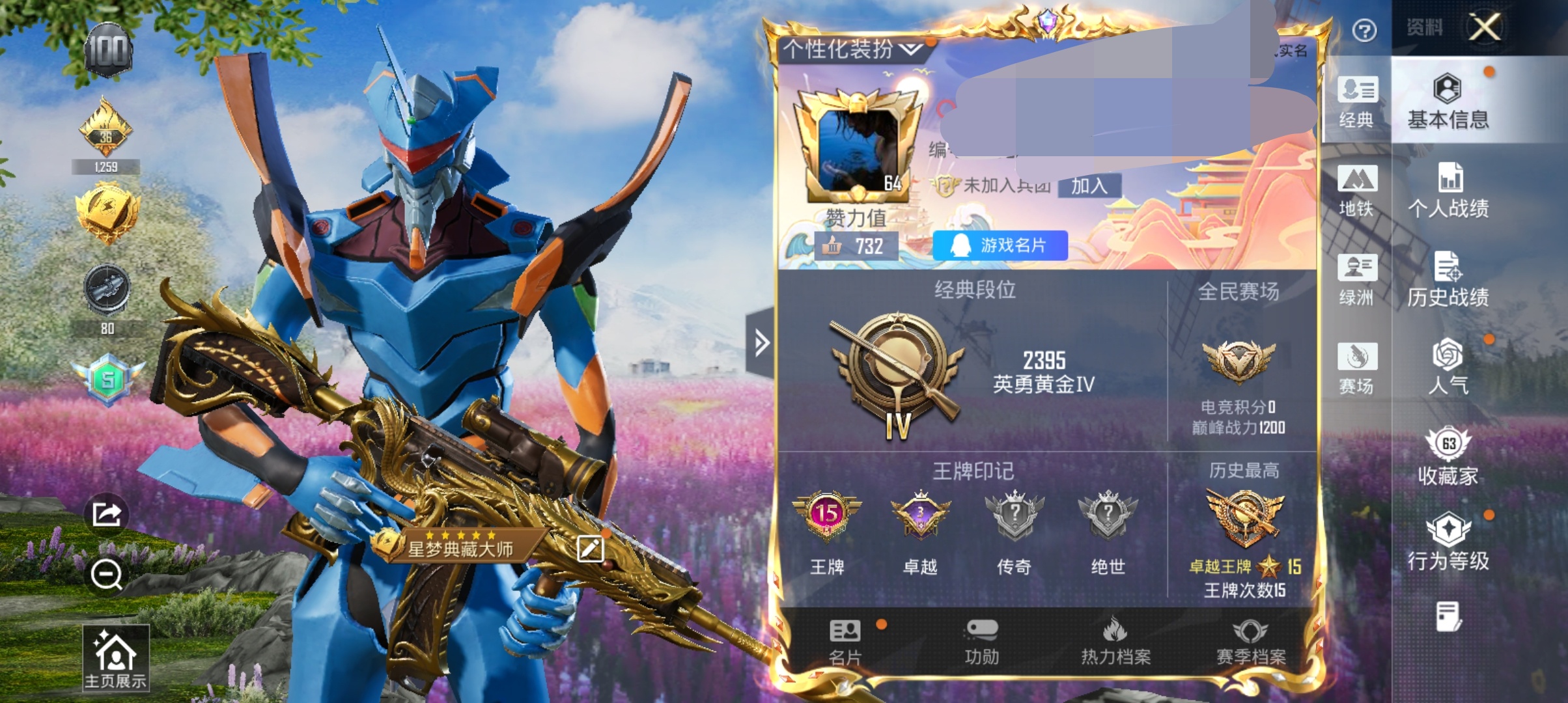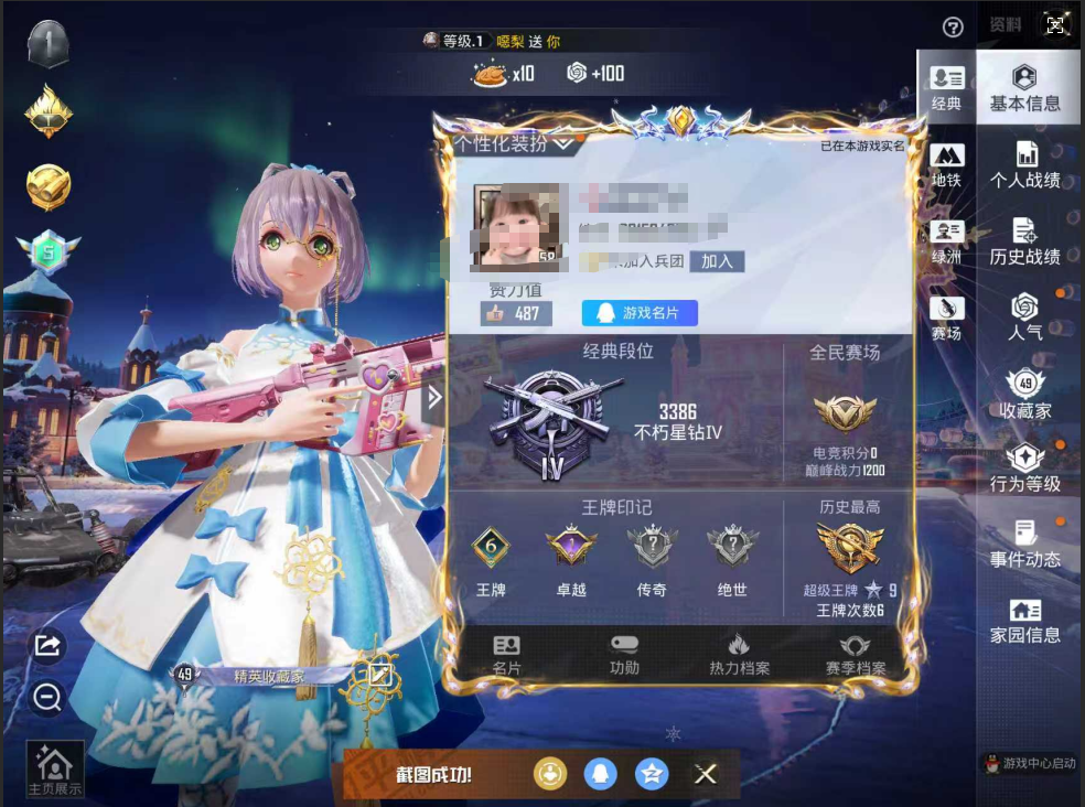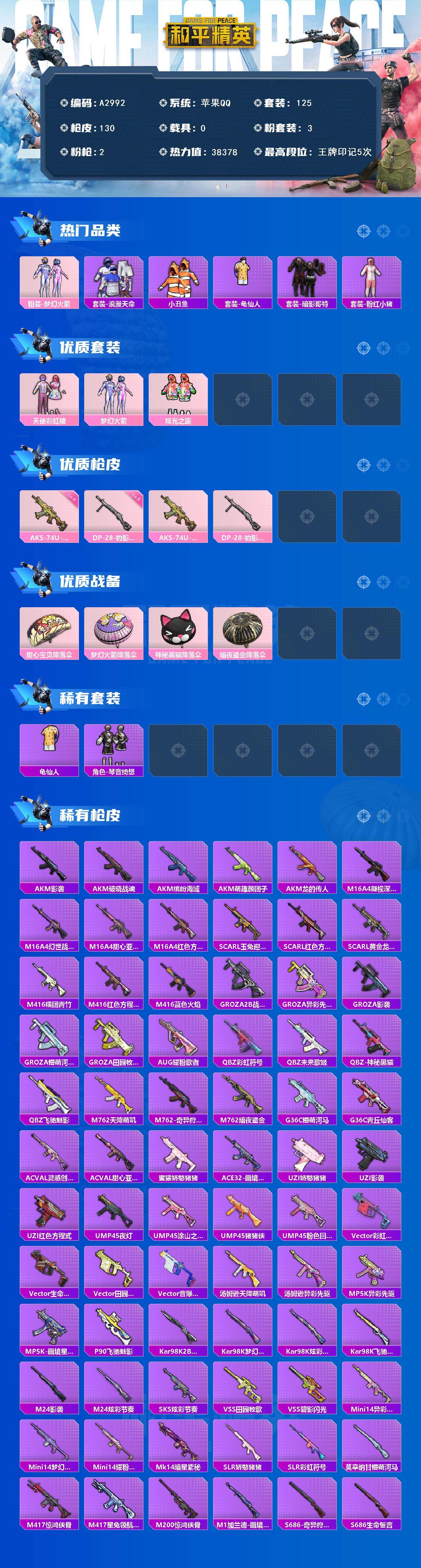 3粉装-2特效枪-0载具-0粉色飞行器-38378热力值-5王牌印记-125套装-130枪皮