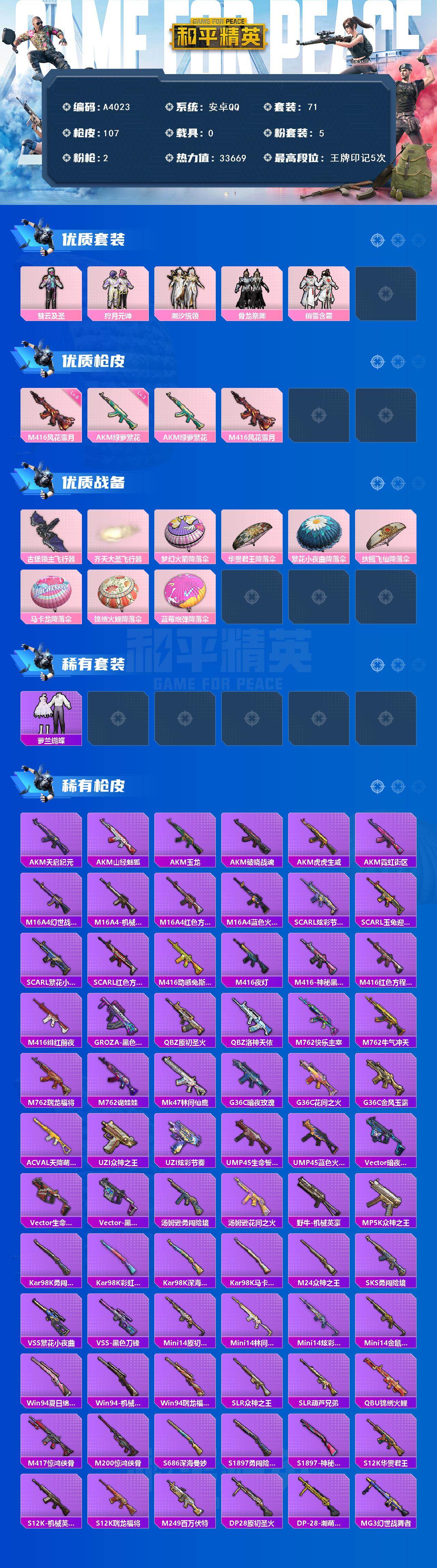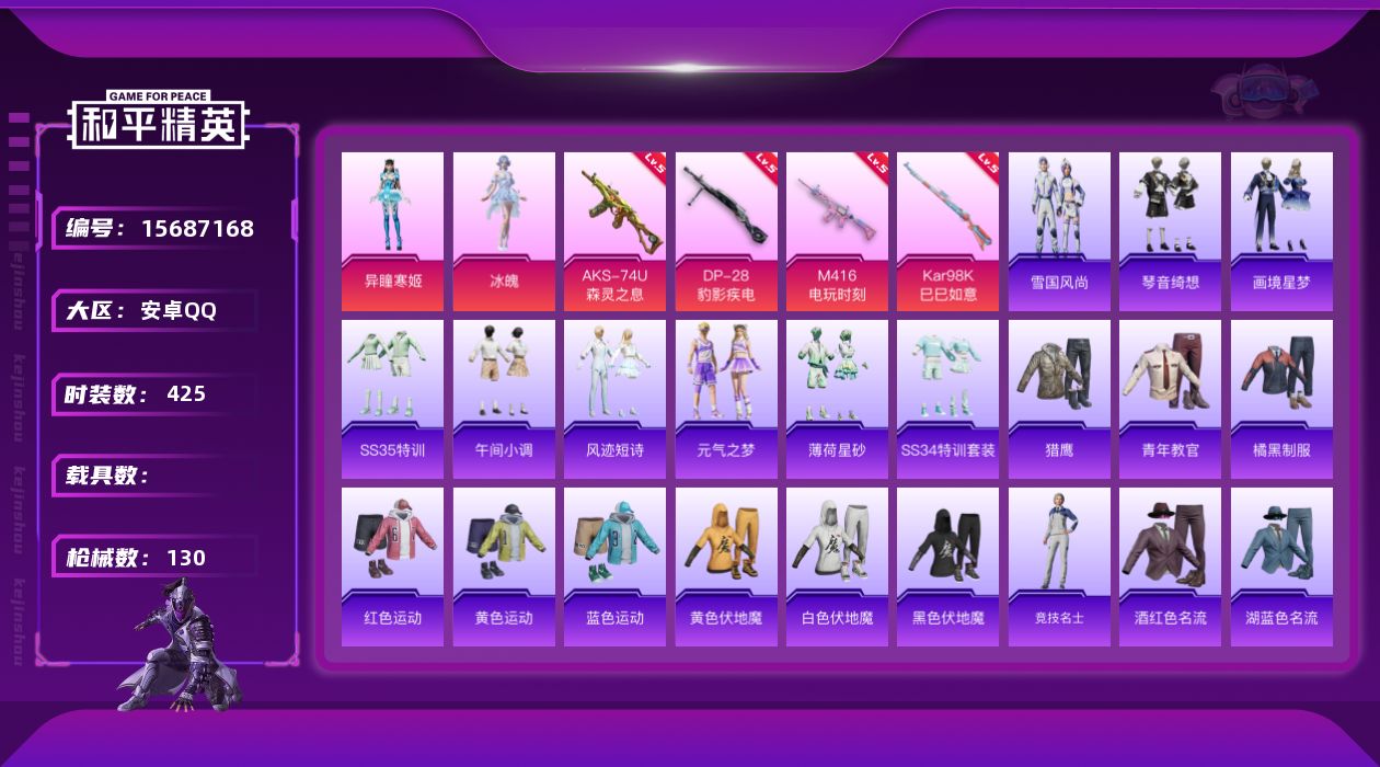 安卓 手Q-5粉装-2特效枪-1载具-1粉色飞行器-39038热力值-7王牌印