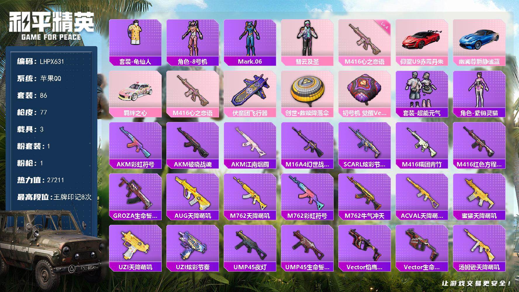 hs54379 苹果手Q-5王牌印记-1粉装-4特效枪-2载具-42324热力值-93套装-134枪