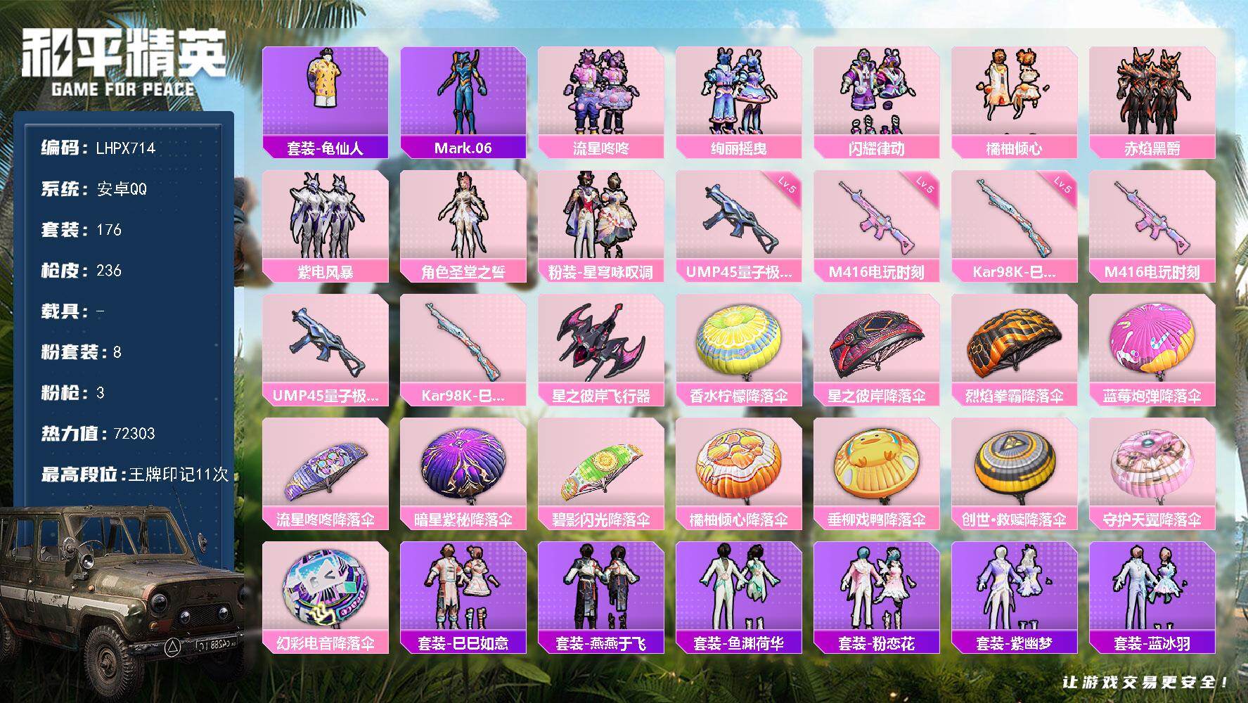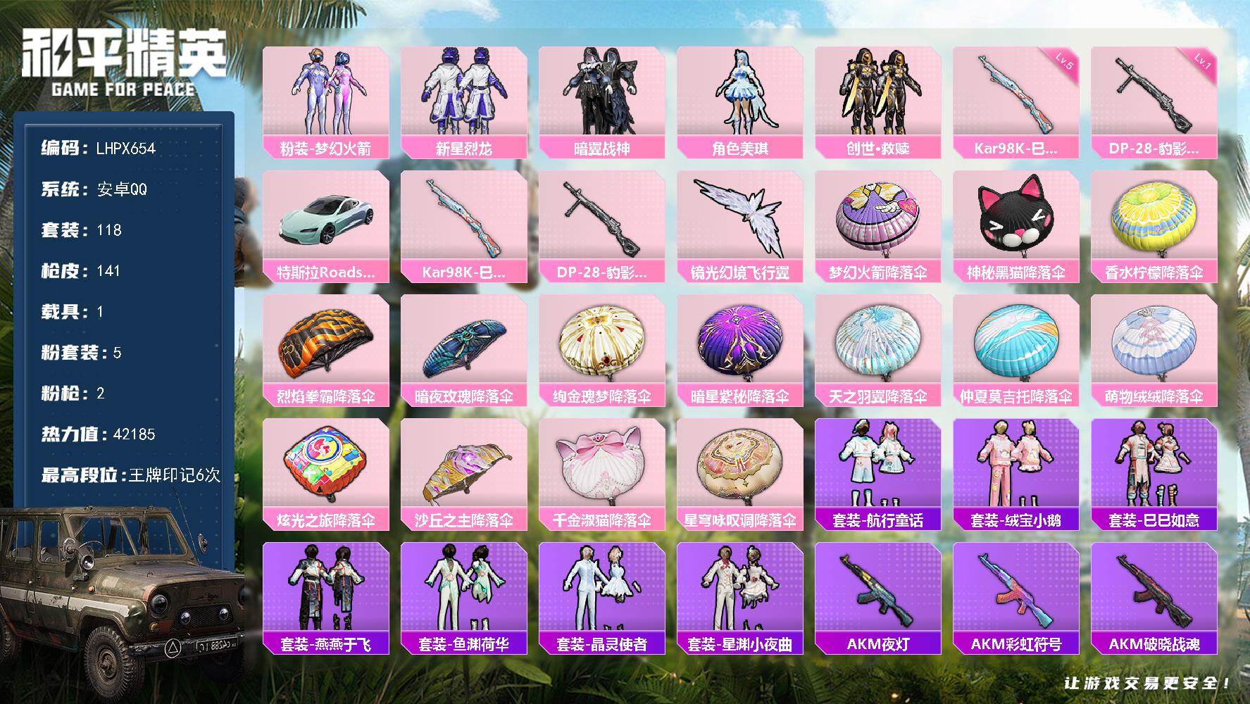 安卓手Q-3王牌印记-4粉装-5特效枪-1载具-149套装-174