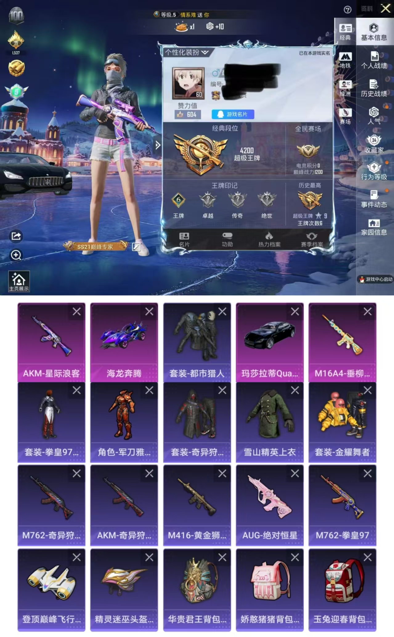热力值64935 1载具 3粉 4特效枪 兰博基尼URUS(明艳黄) 满级满配AKM-炫紫旋律 满级