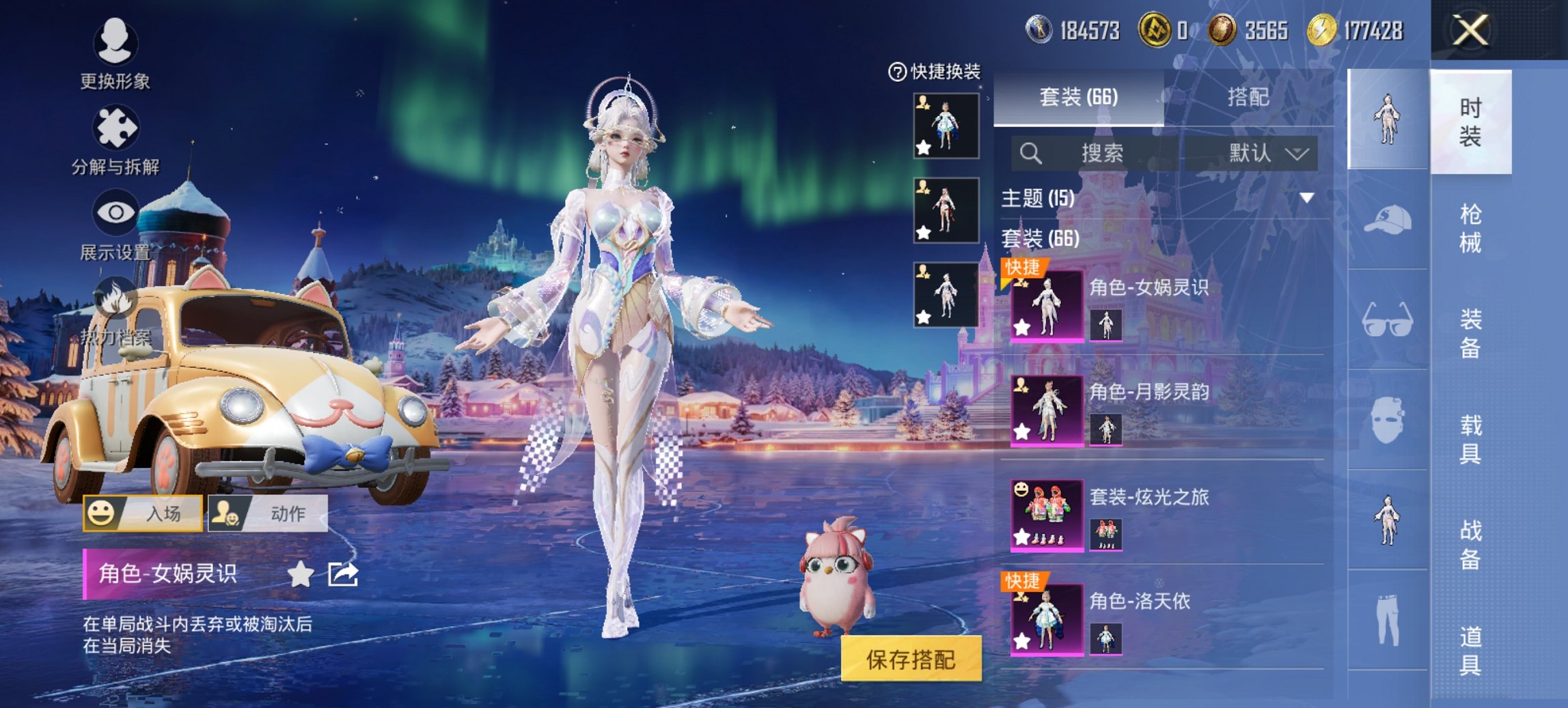 女号角色-女娲灵识、洛天依4粉装4特效枪1载具、秒换绑不用等