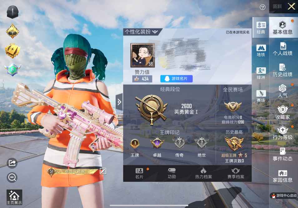 6粉装 2特效枪 1载具 4印记 可二次 可修改实名 连体王者 热门装扮:炙焰红王,天禅智恒,彩虹鹿