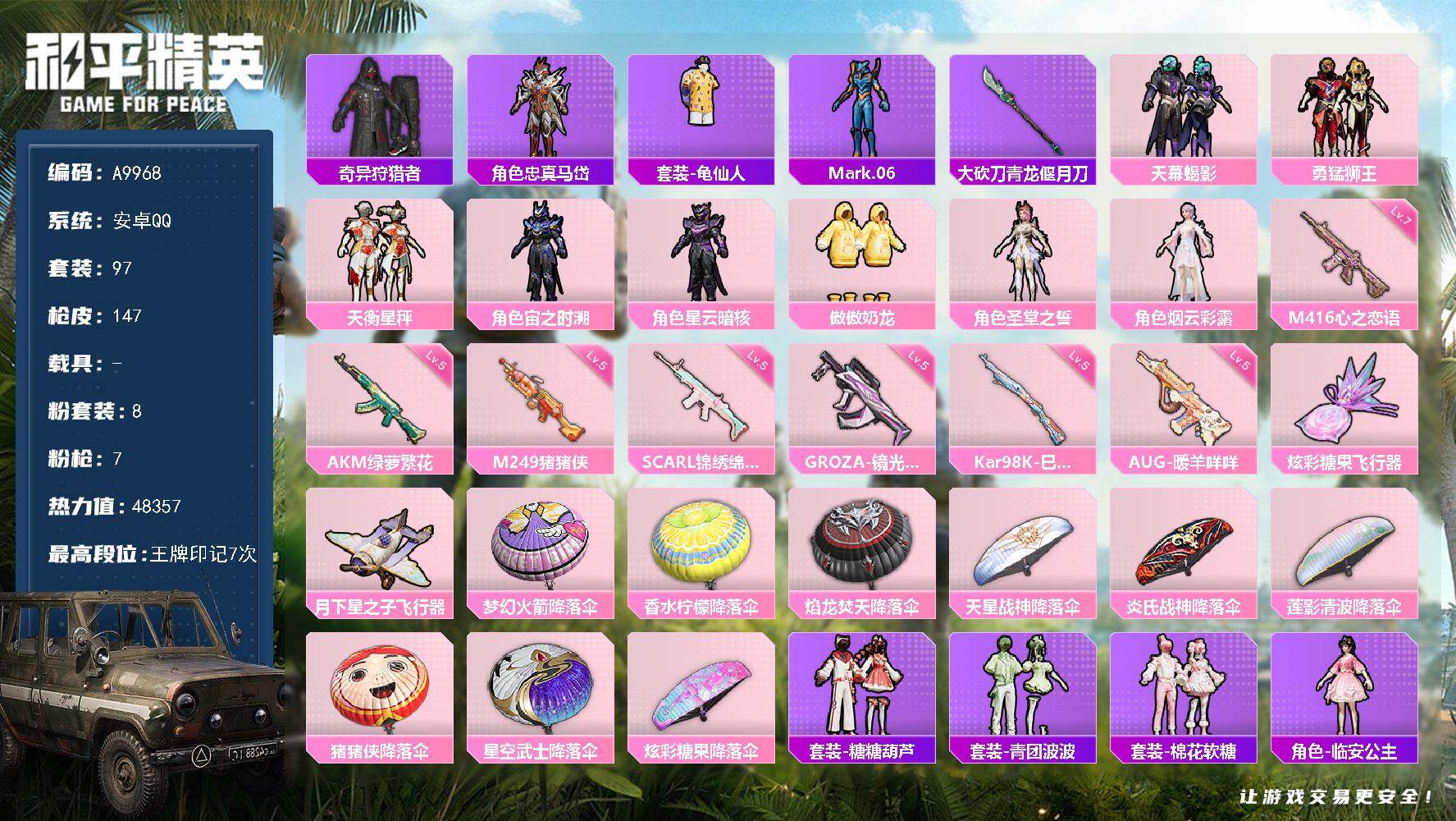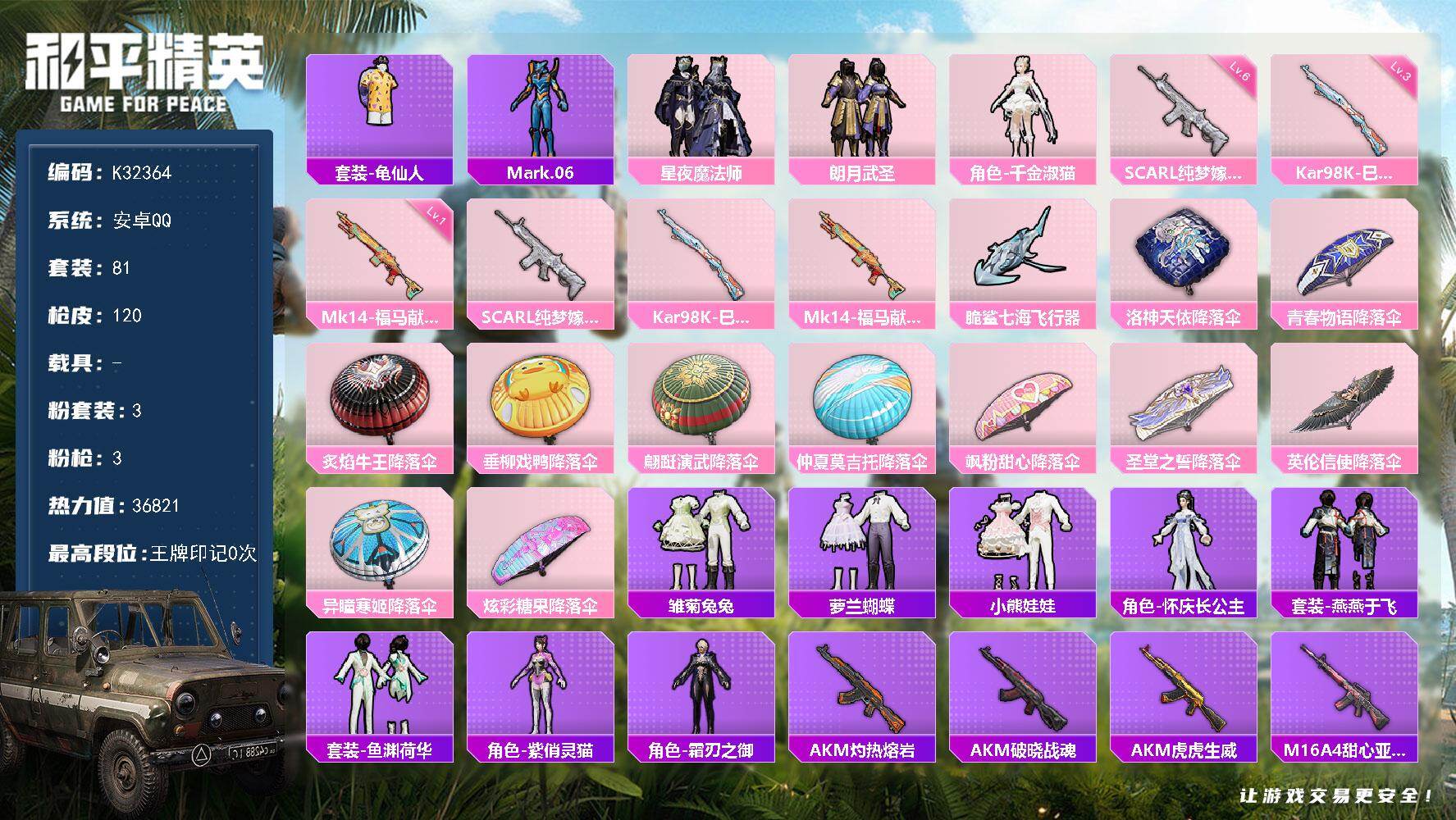 安卓 手Q-3粉装-4特效枪-0载具-4粉色飞行器-52124热力值-7王牌印记