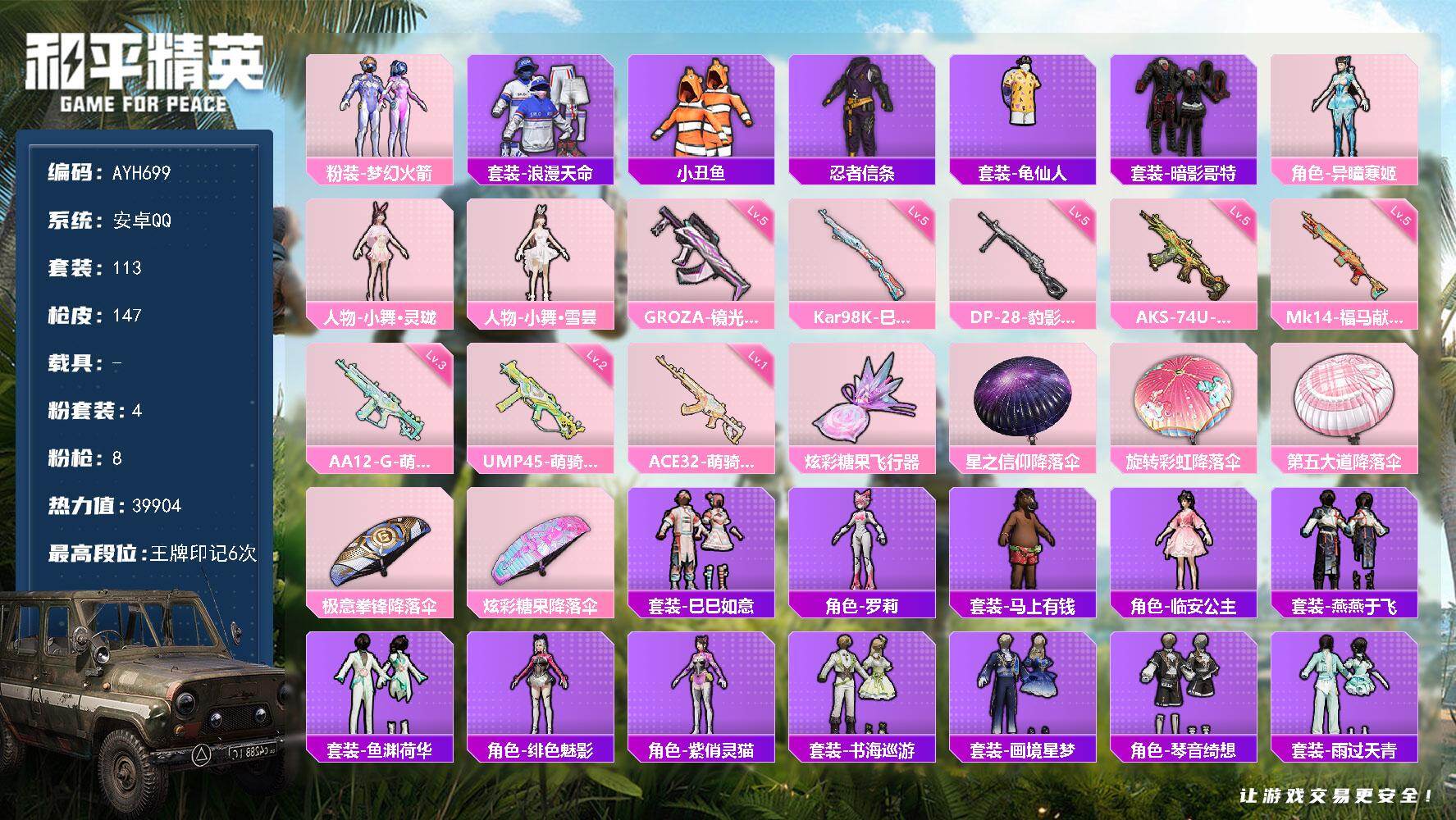 安卓 手Q-2粉装-5特效枪-0载具-3粉色飞行器-39858热力值-4王牌印记