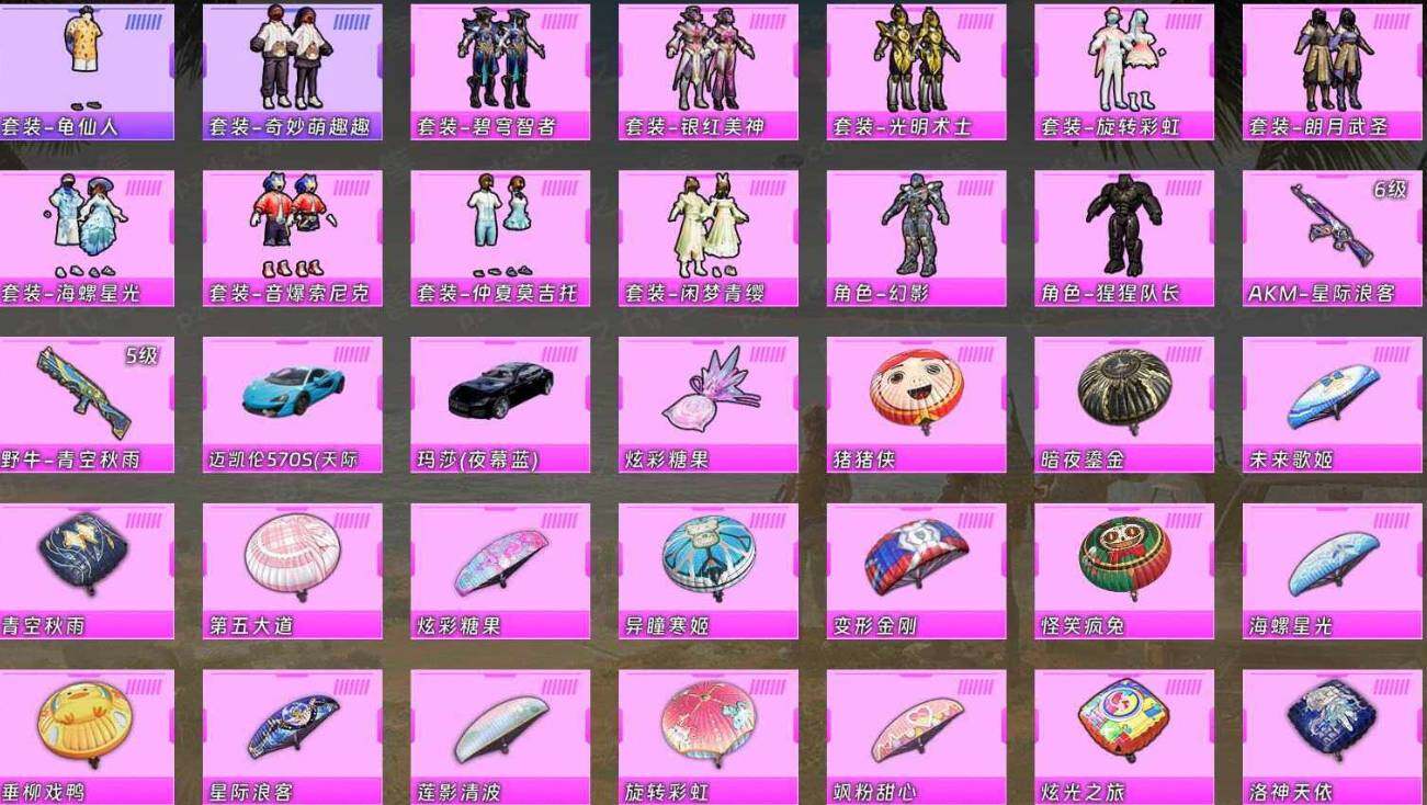 11粉装-2特效枪-2载具-1粉色飞行器-46468热力值-8王牌印记-110套装-141枪皮