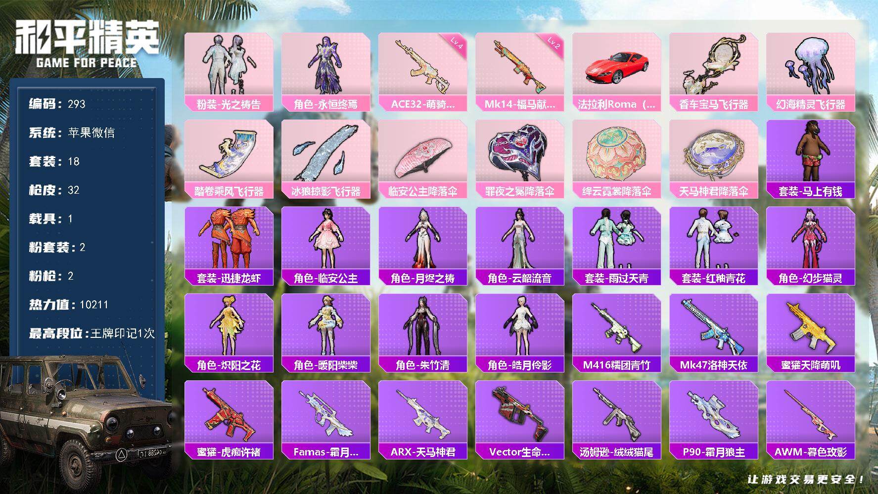 安卓 微信-4粉装-9特效枪-0载具-1粉色飞行器-61399热力值-5王牌印记