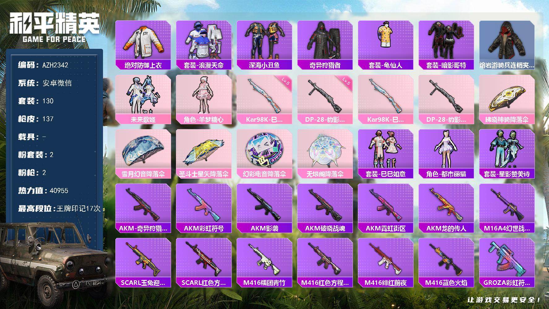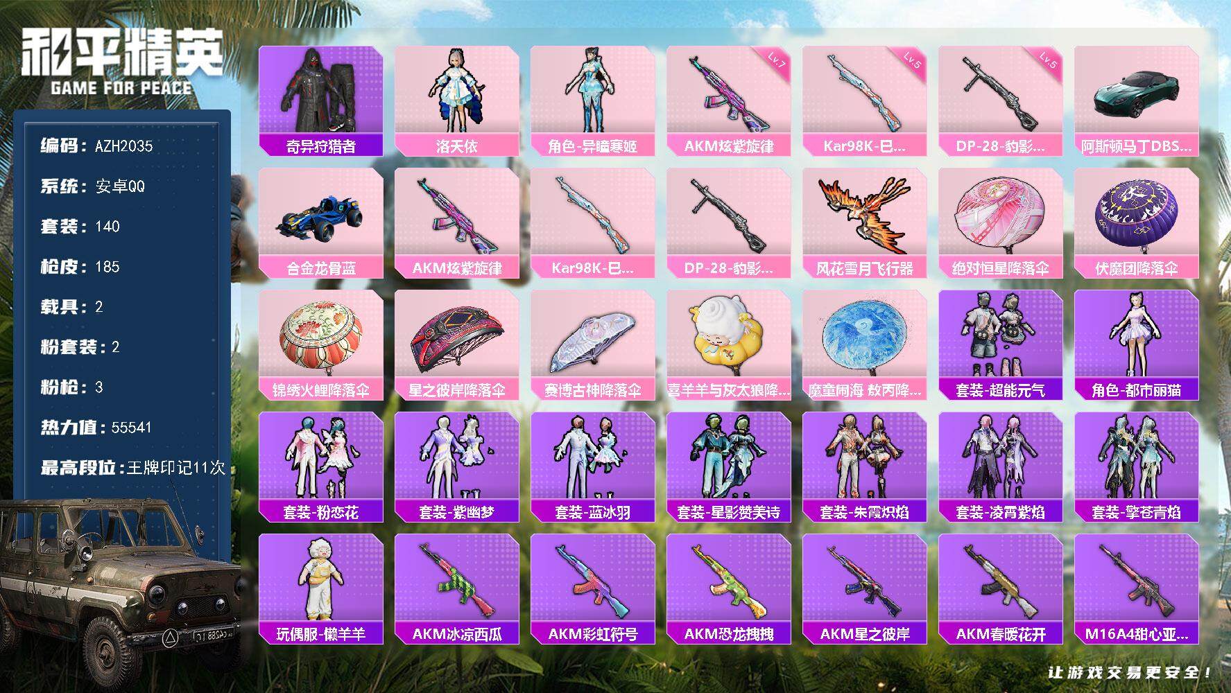 安卓 手Q-8粉装-5特效枪-0载具-0粉色飞行器-55903热力值-4王牌印