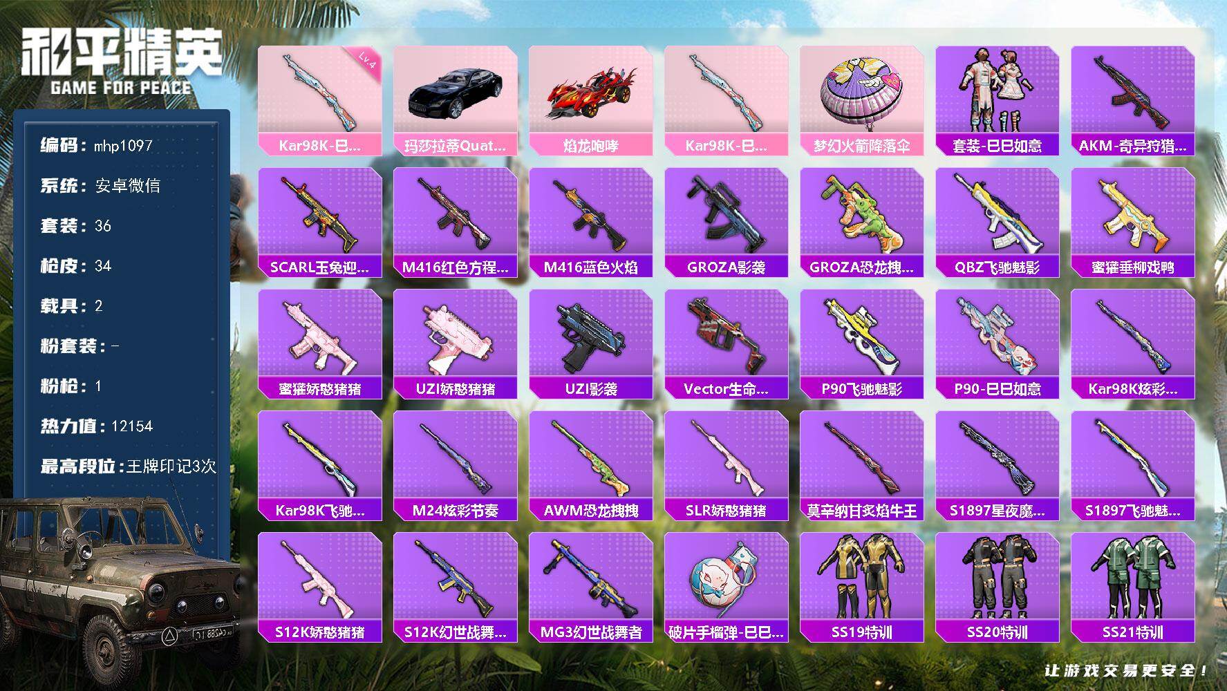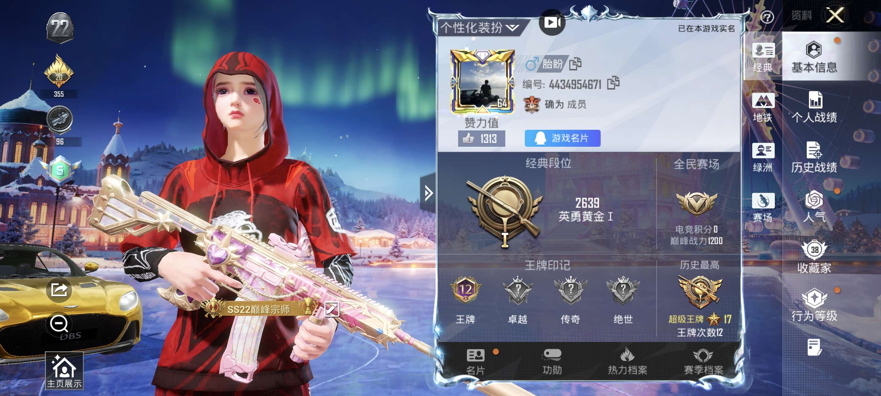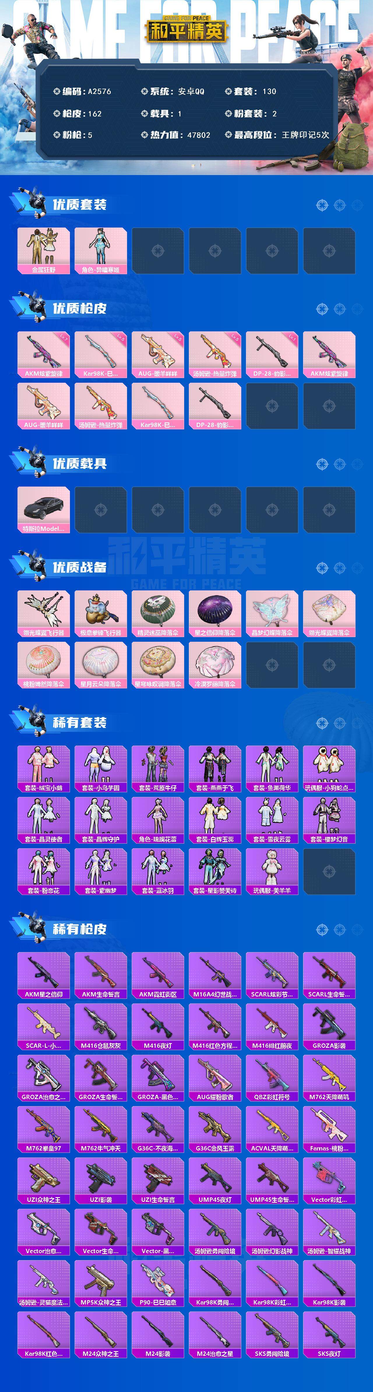 安卓 手Q-7粉装-6特效枪-0载具-0粉色飞行器-45753热力值-7王牌印