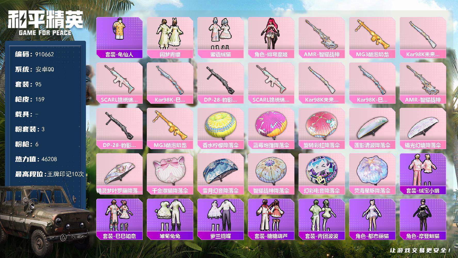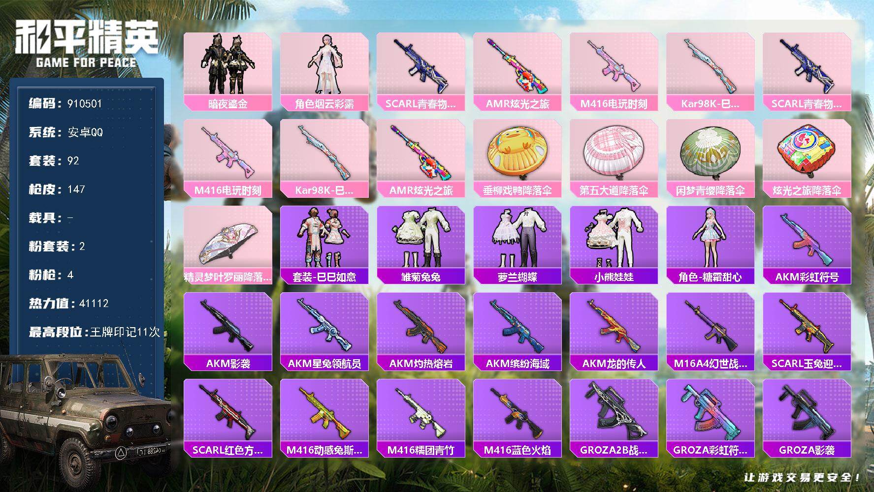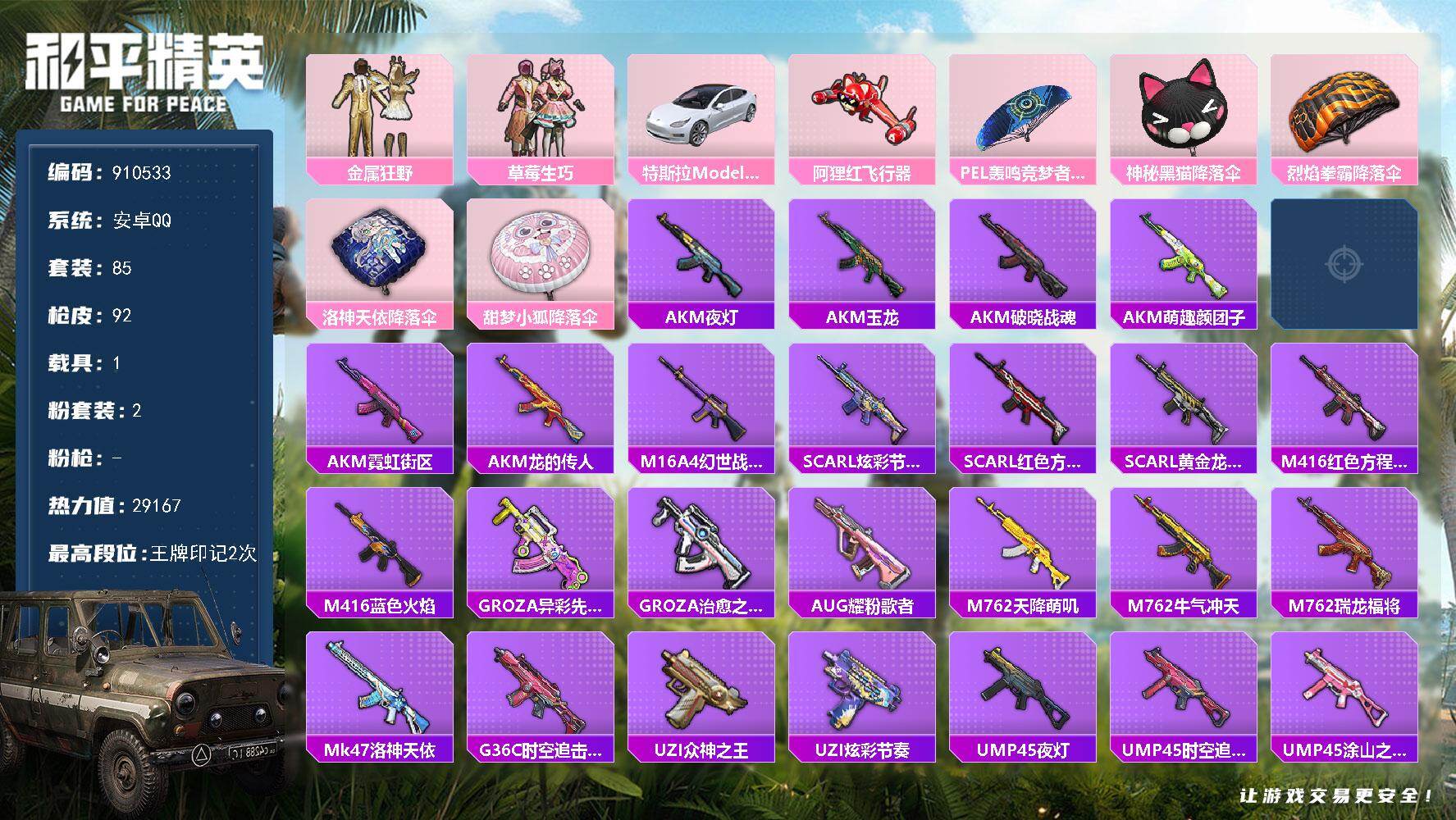 安卓手Q-4王牌印记-3粉装-6特效枪-63707热力值-167