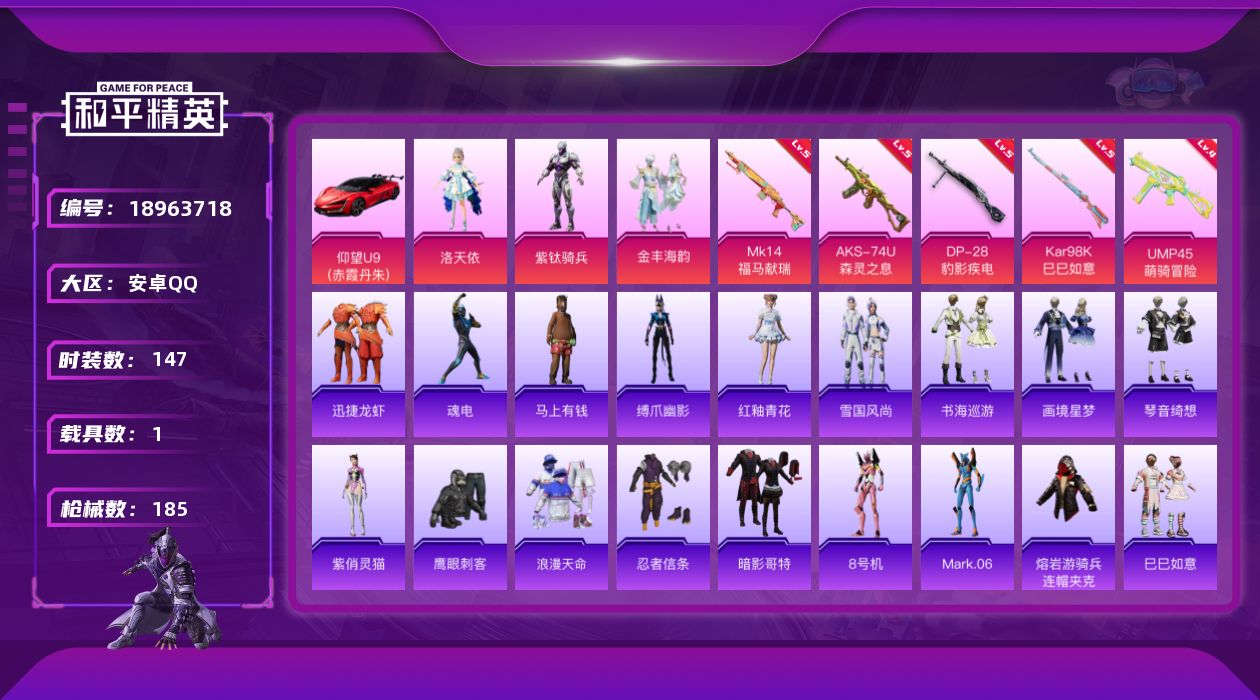 安卓 手Q-5粉装-10特效枪-0载具-1粉色飞行器-39145热力值-5王牌