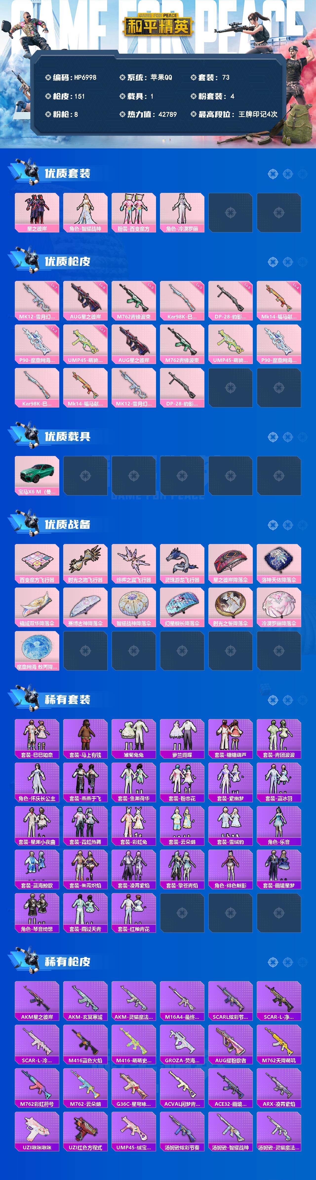 苹果手Q-2粉装-7特效枪-99套装-122枪皮-5王牌印记-不朽星钻Ⅱ-313