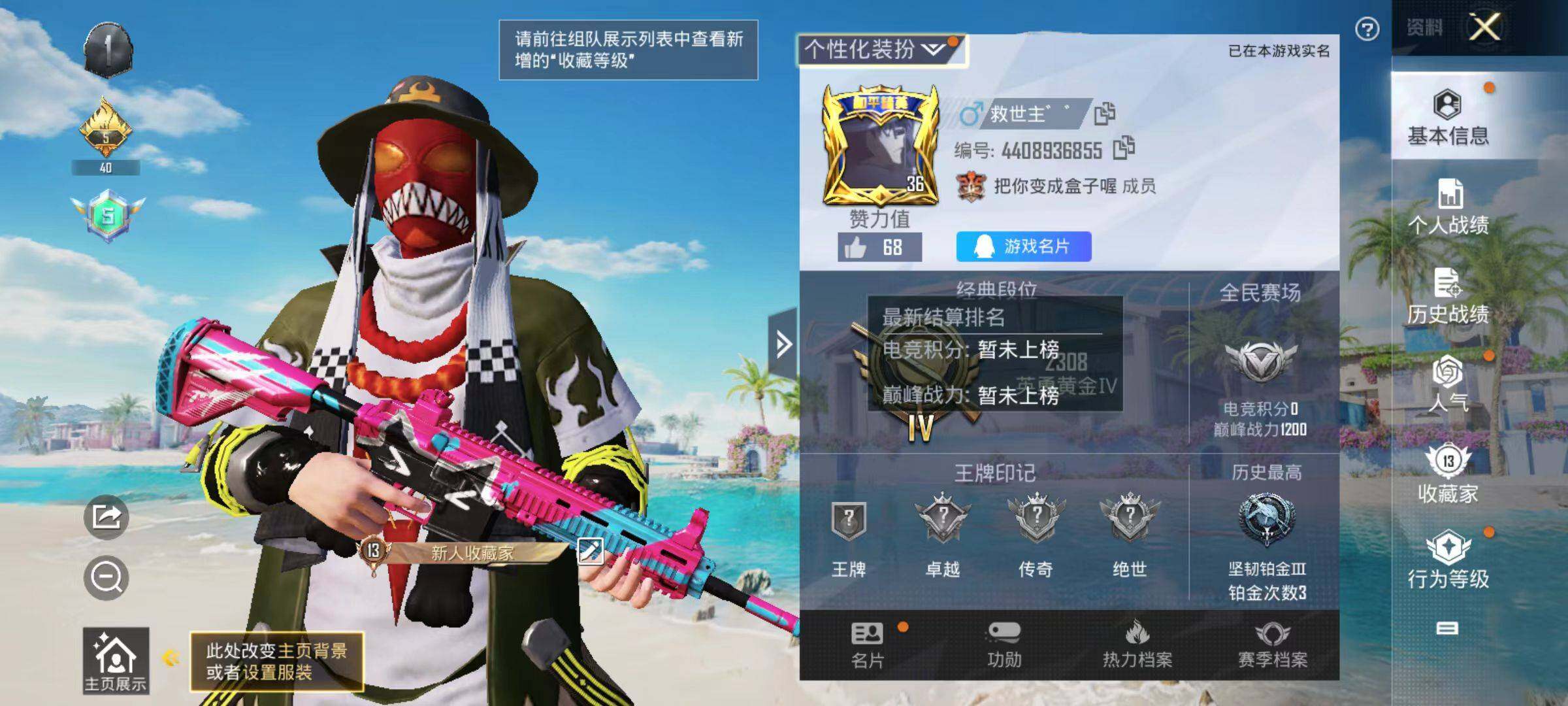 15套装/枪械2/装备22/战备18/王牌印记1/热力值4808/五级Kar9