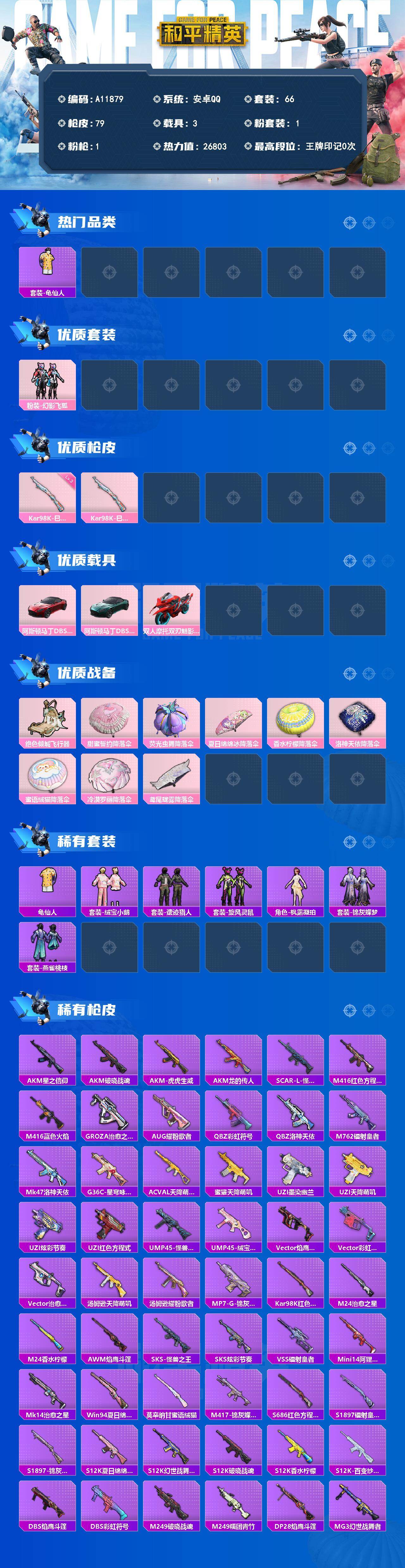 hs57870 安卓手Q-4王牌印记-4粉装-4特效枪-1载具-19900热力值-34套装-55枪皮