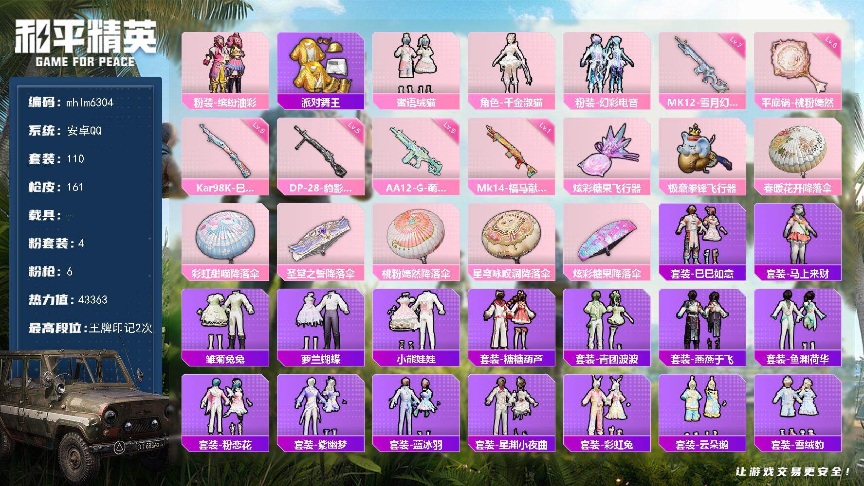满级地铁安卓 手Q-3粉装-5特效枪-1载具-4粉色飞行器-39179热力值-1
