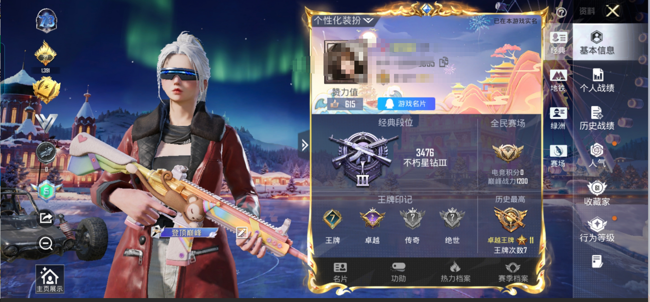 1粉装-6特效枪-1载具-0粉色飞行器-34532热力值-6王牌印记-90套装-120枪皮