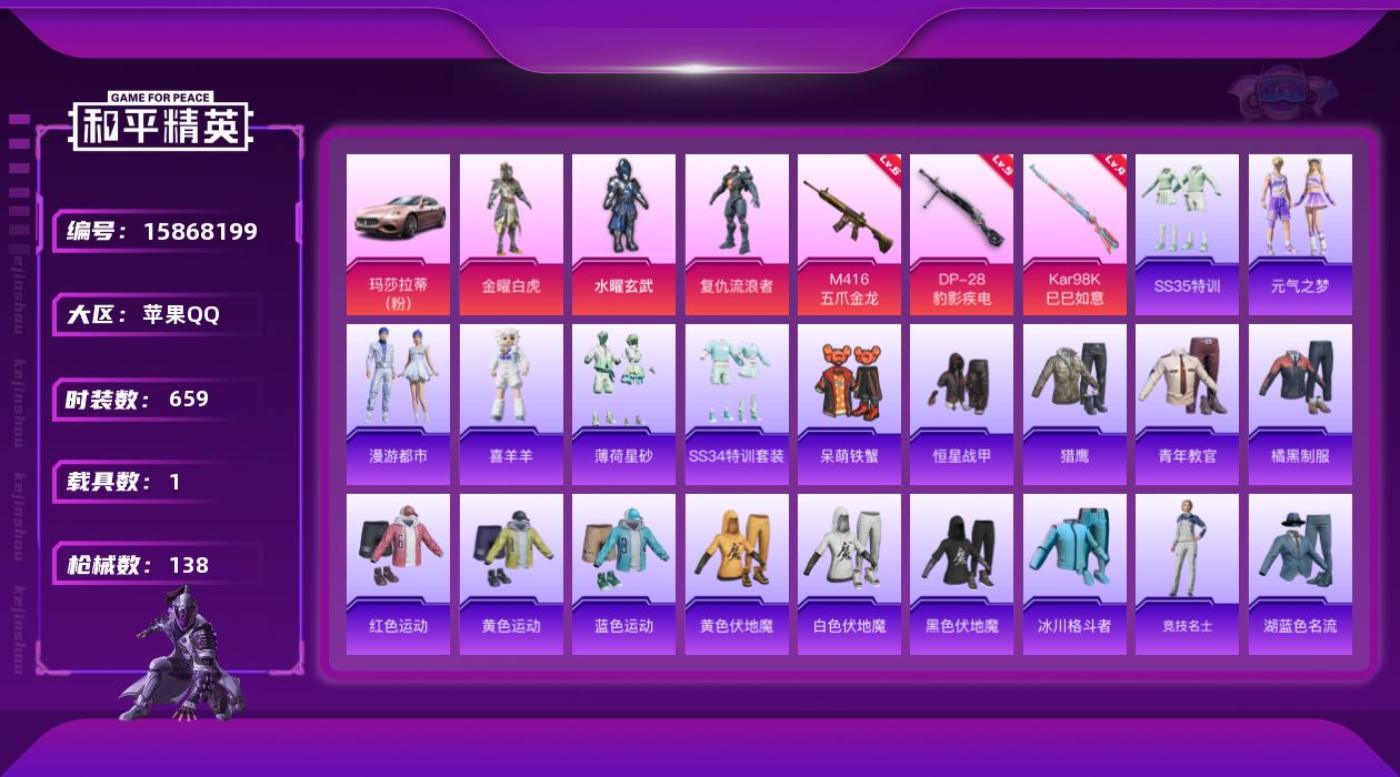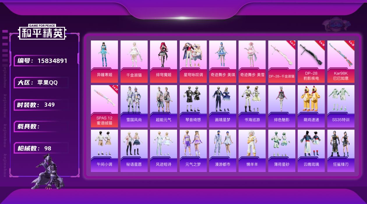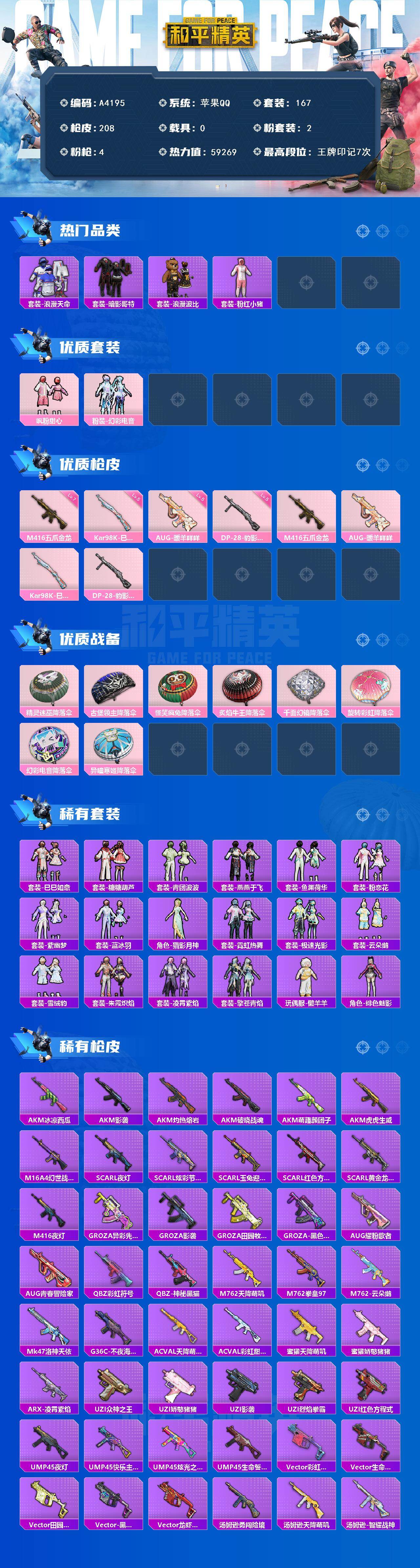 2粉装-4特效枪-0载具-1粉色飞行器-59269热力值-7王牌印记-167套装-208枪皮