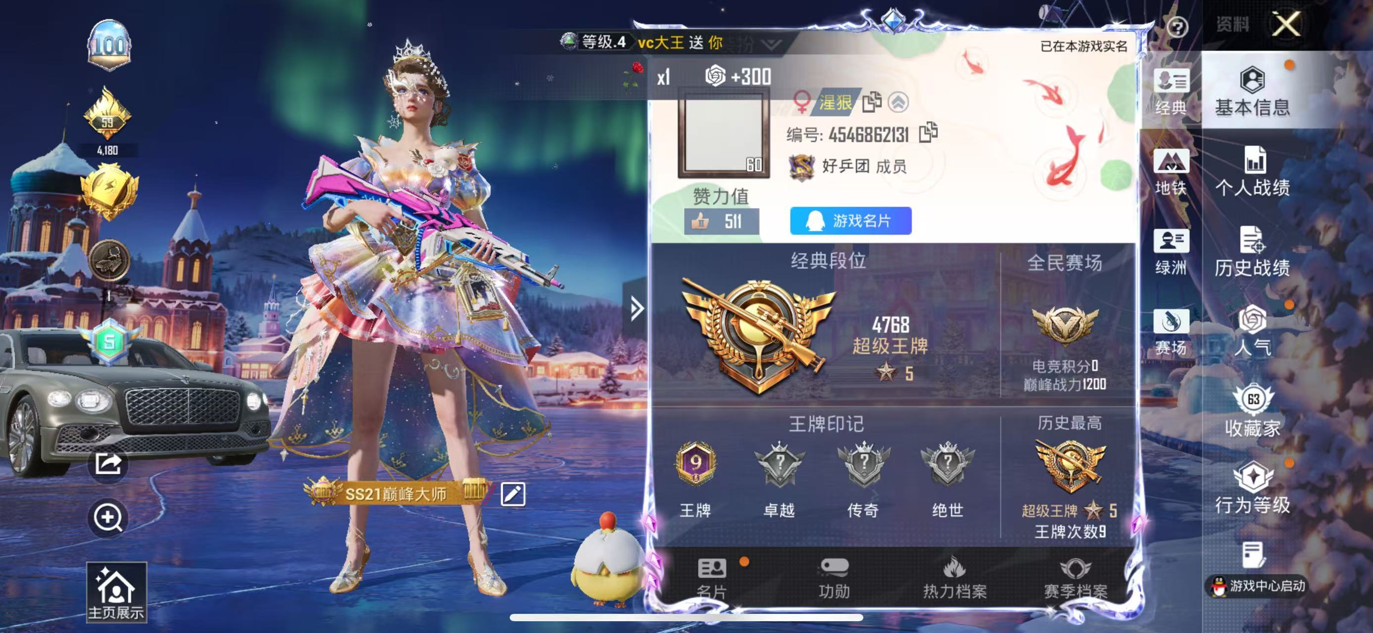 安卓 手Q-7粉装-3特效枪-0载具-0粉色飞行器-65869热力值-14王牌