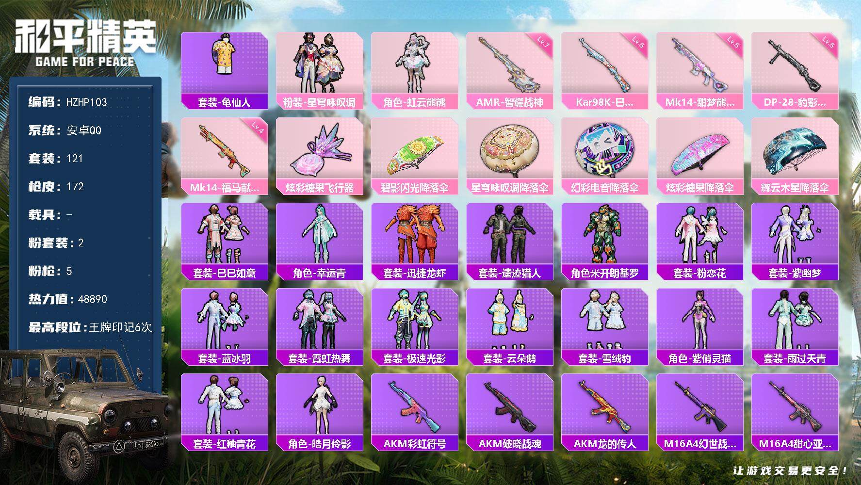 安卓 手Q-2粉装-5特效枪-0载具-1粉色飞行器-48890热力值-6王牌印记