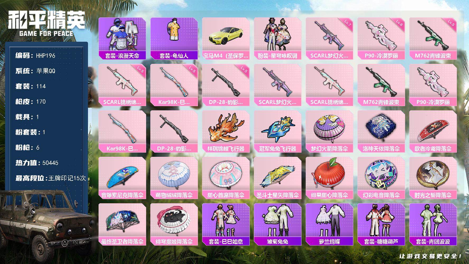 手Q-4粉装-2特效枪-2载具-1粉色飞行器