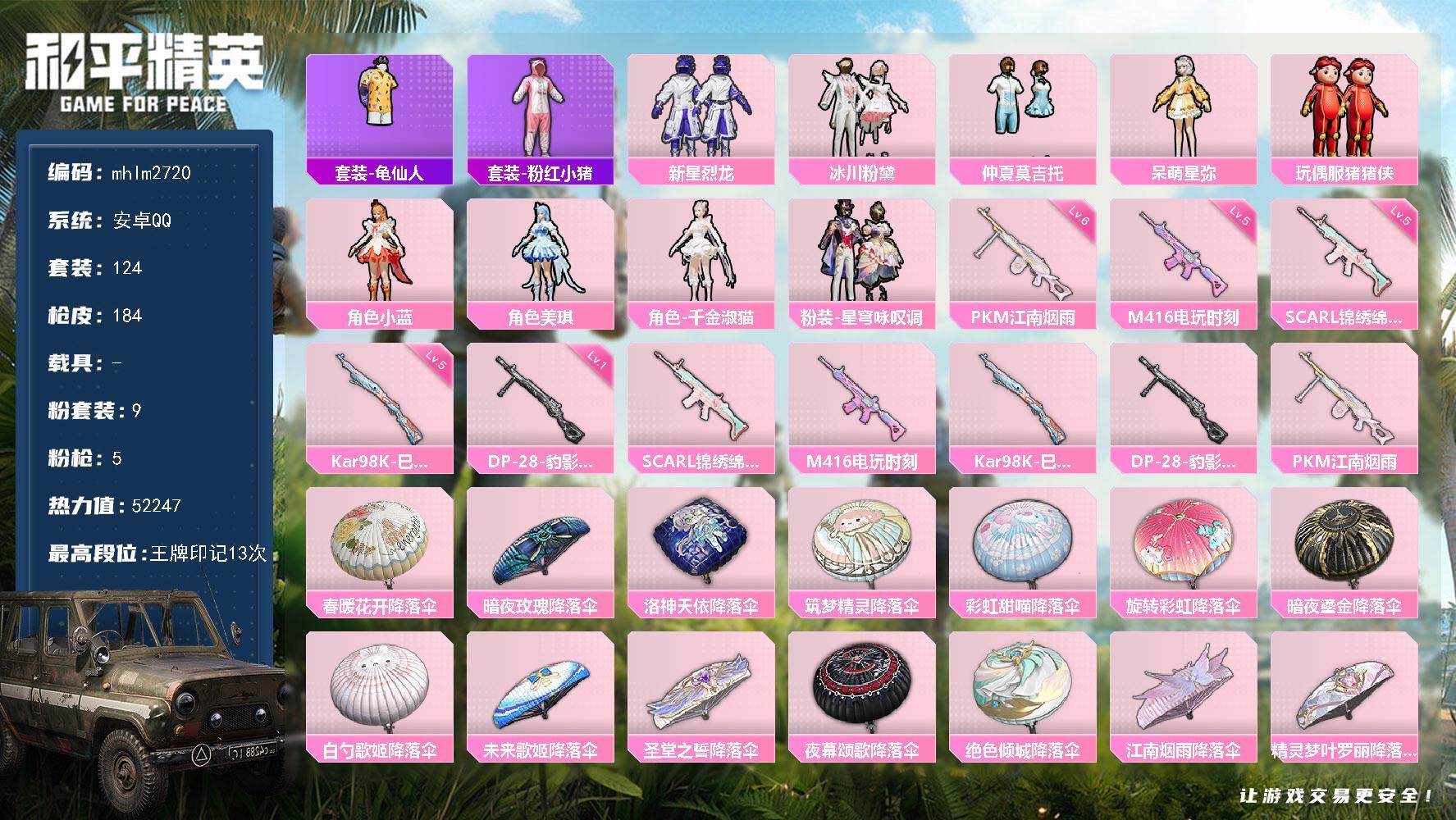 【mhlm2720】安卓 手Q-9粉装-5特效枪-0载具-0粉色飞行器-522