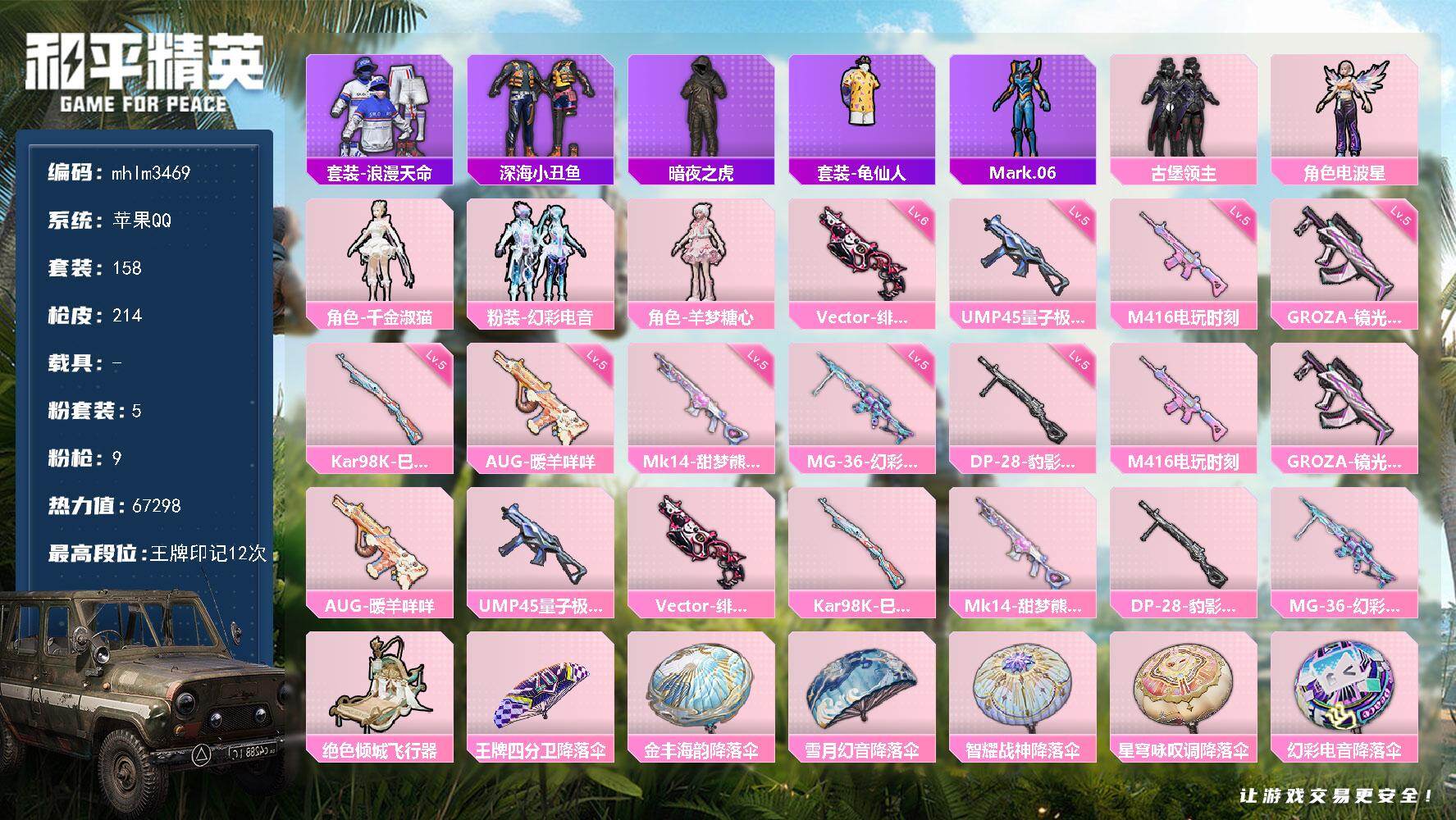 【mhlm3469】苹果 手Q-5粉装-9特效枪-0载具-2粉色飞行器-672