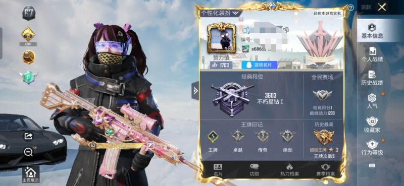hs43996 苹果手Q-3王牌印记-4粉装-7特效枪-1载具-44783热力值-84套装-149枪