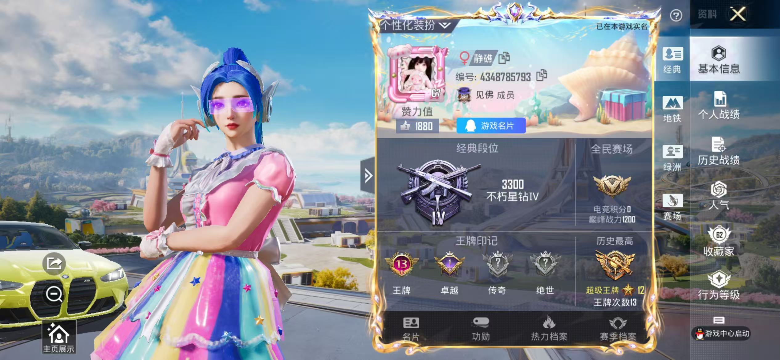苹果 手Q-3粉装-3特效枪-1载具-3粉色飞行器-38388热力值-8王牌印