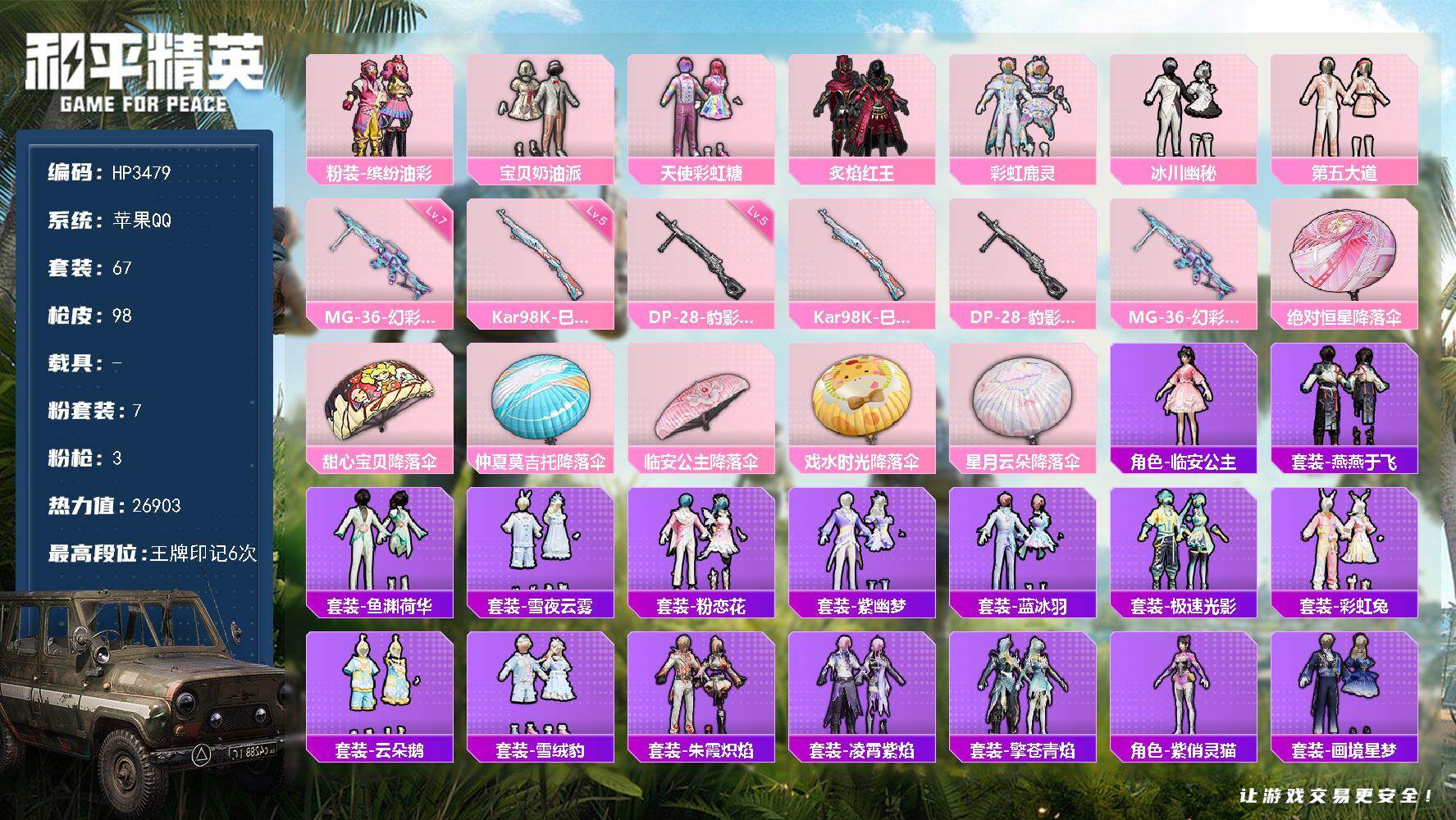 hs50396 苹果v-2王牌印记-4粉装-1特效枪-1载具-26994热力值-63套装-87枪皮