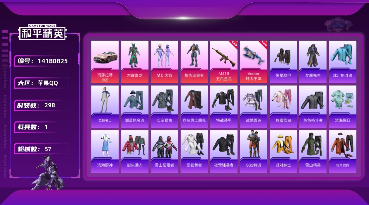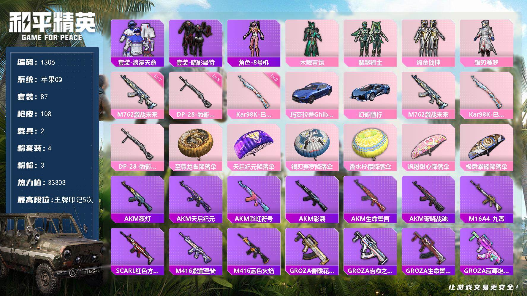 苹果 手Q-无敌战神框-4粉装-2特效枪-2载具-0粉色飞行器-67663热力
