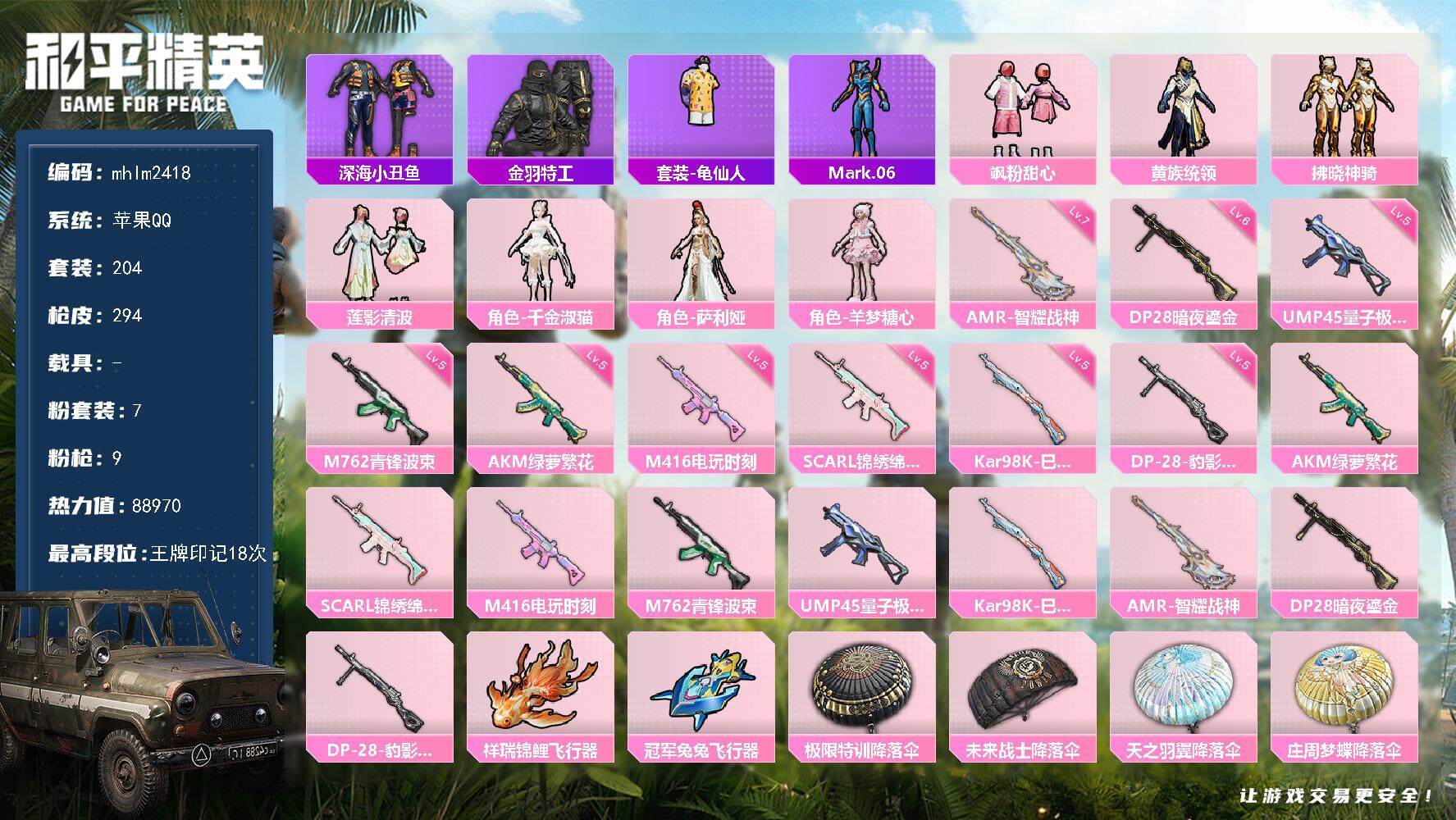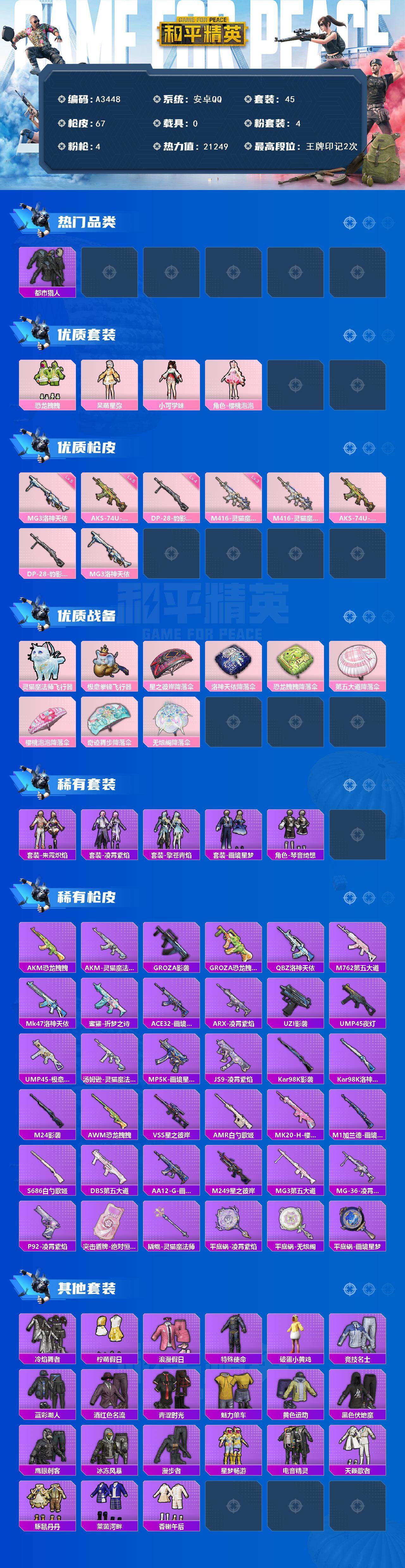 hs47697 安卓手Q-8王牌印记-4粉装-1特效枪-3载具-43853热力值-96套装-126枪