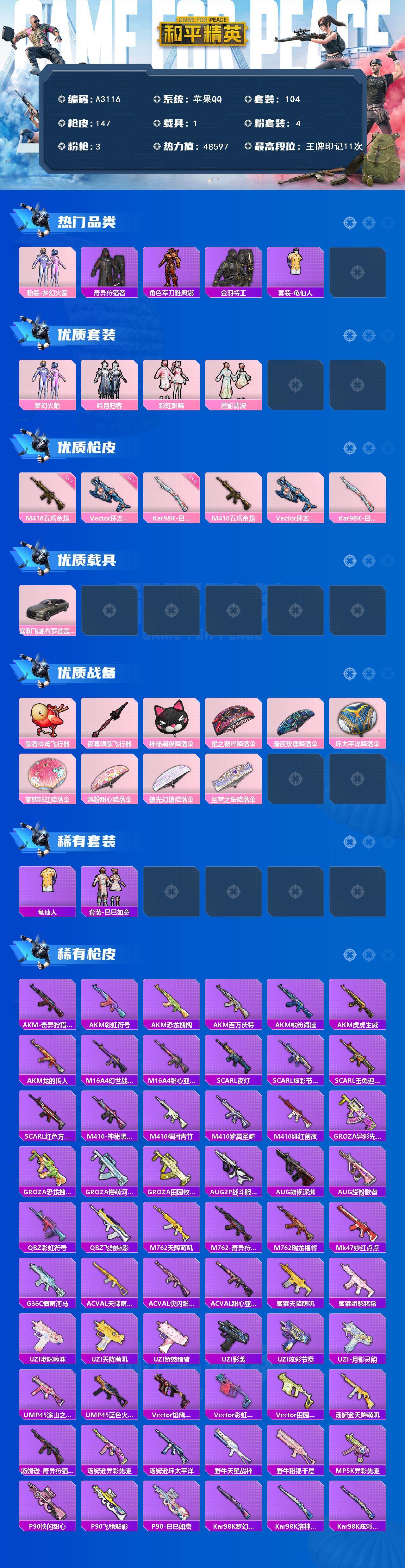 4粉装-3特效枪-1载具-2粉色飞行器-48597热力值-11王牌印记-104套装-147枪皮