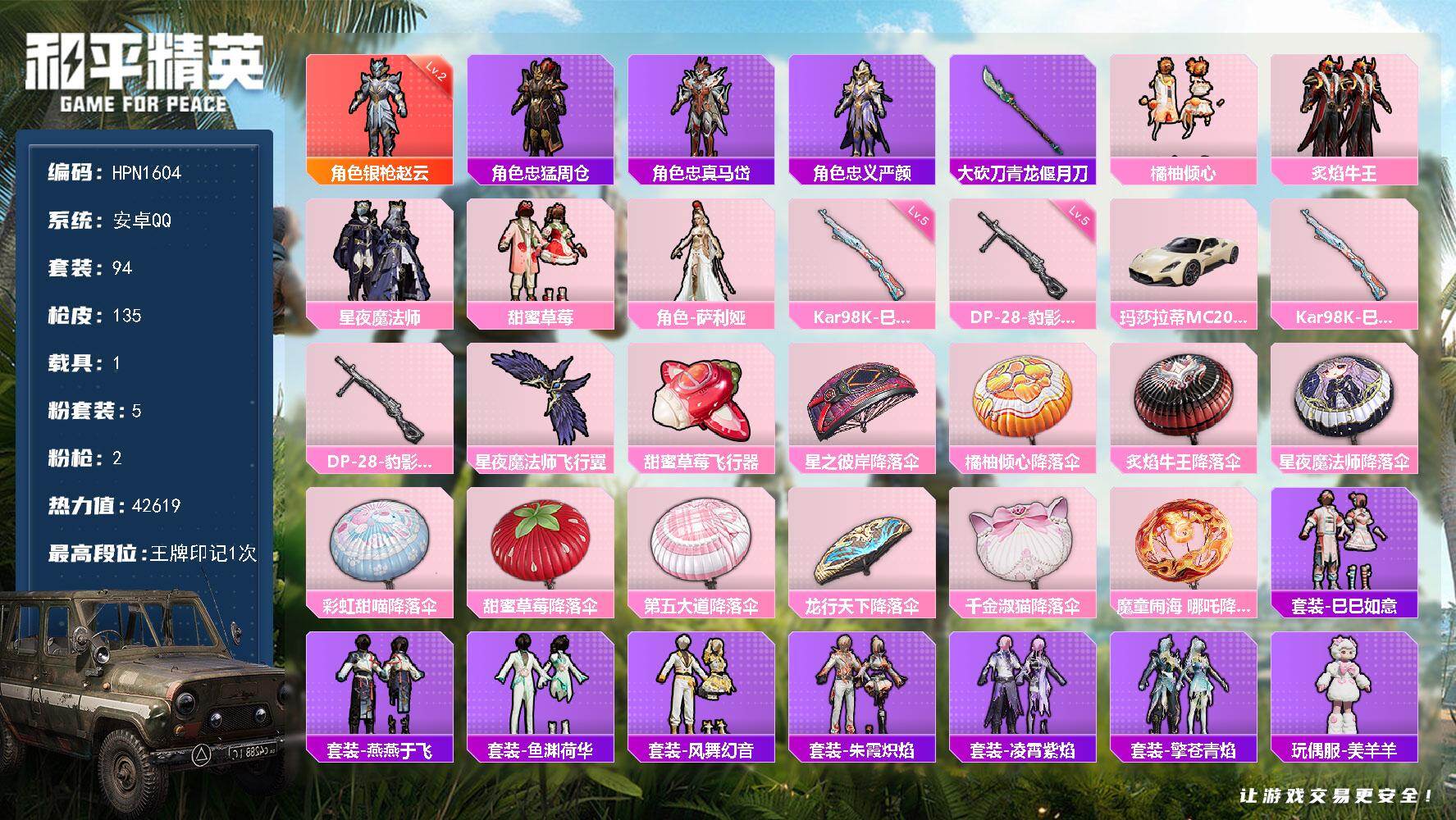 94套装/枪械2/装备154/载具1/战备77/王牌印记1/热力值42619/
