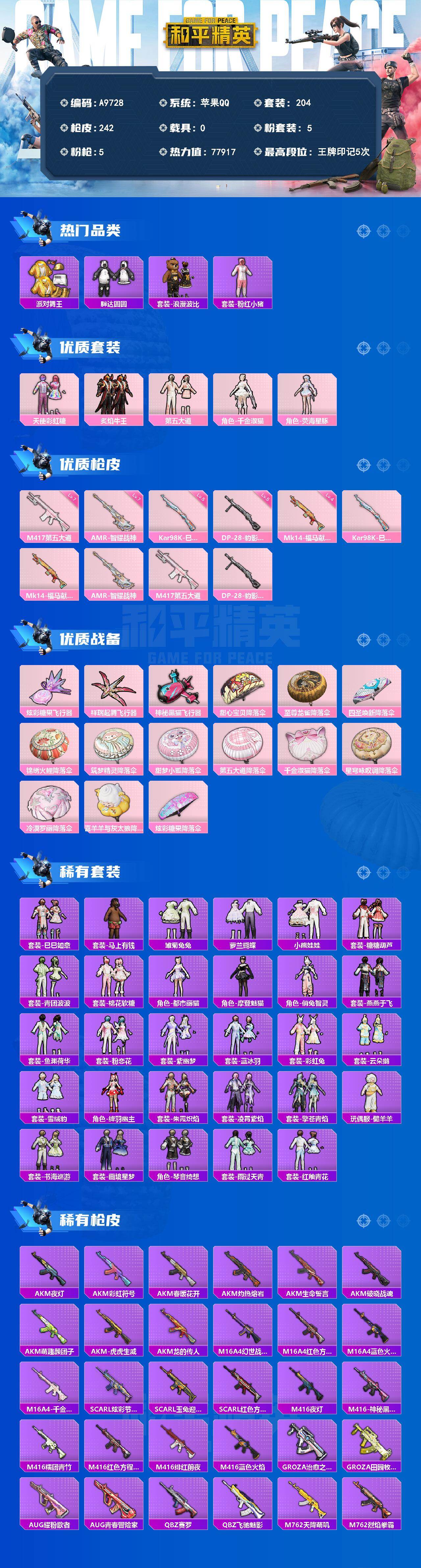 安卓 手Q-3粉装-8特效枪-1载具-1粉色飞行器-45186热力值-10王牌