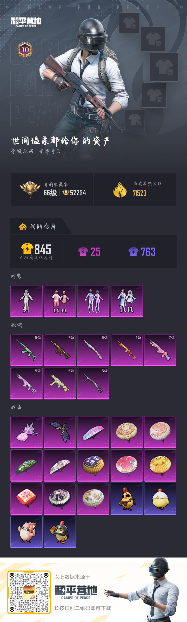 安卓 手Q-4粉装-9特效枪-0载具-4粉色飞行器-64486热力值-14王牌印