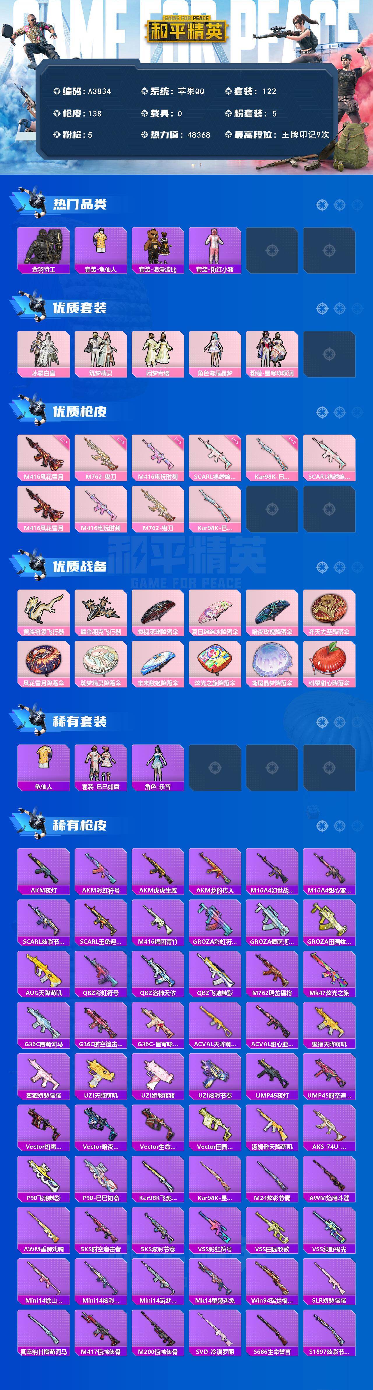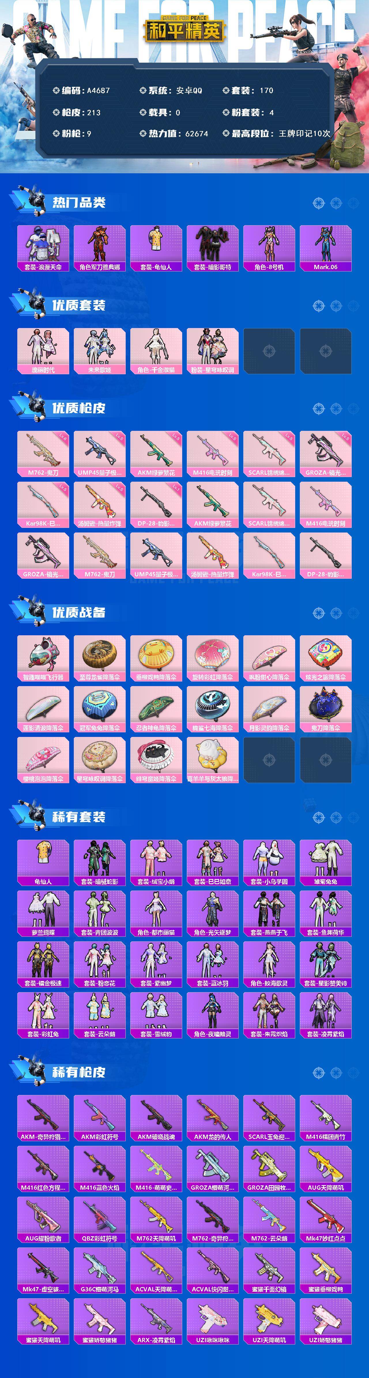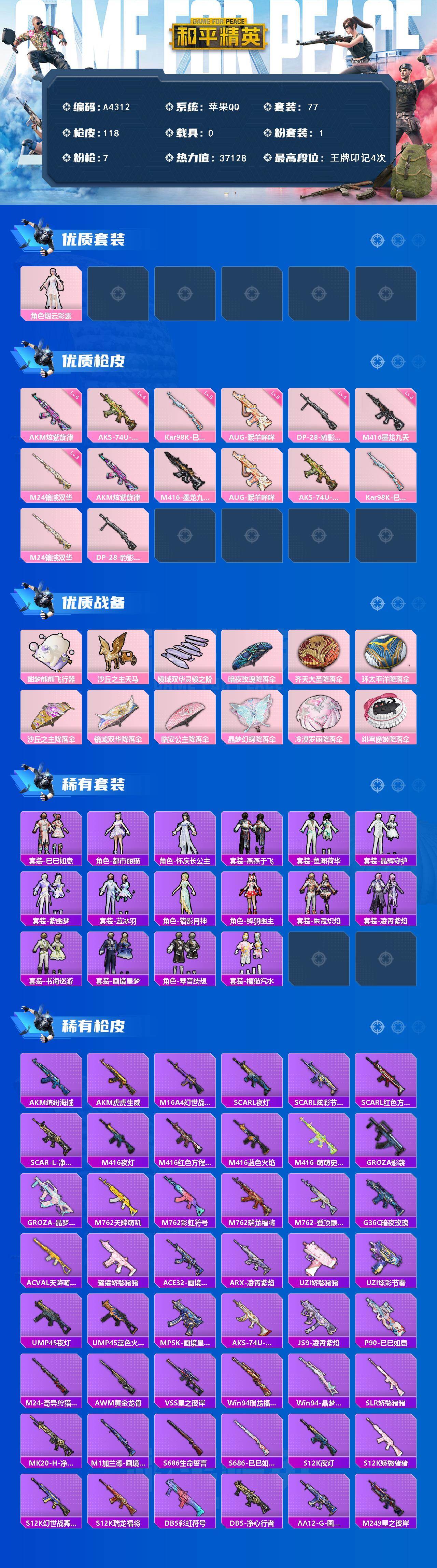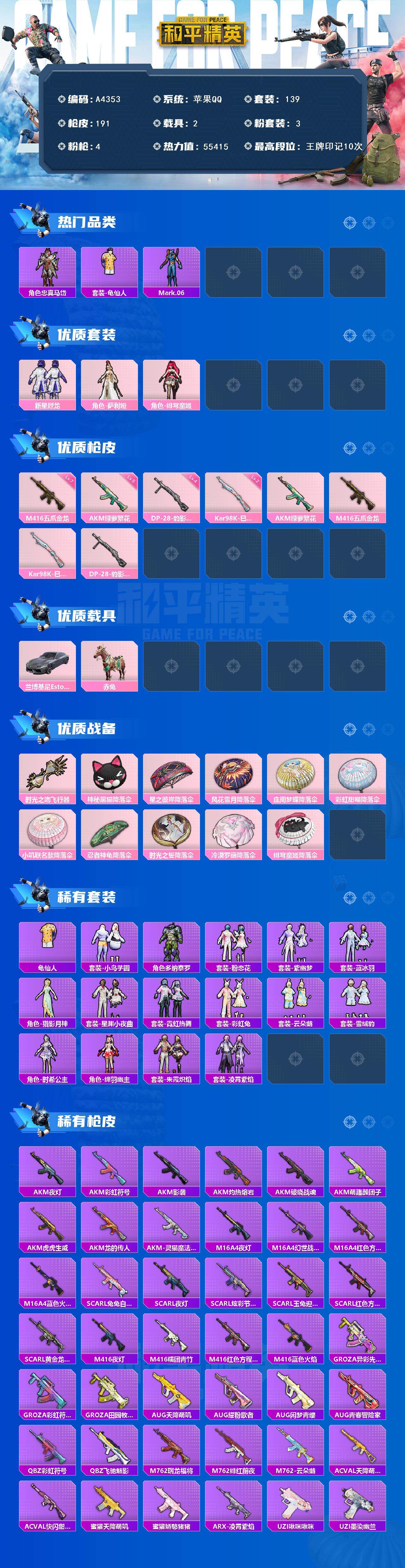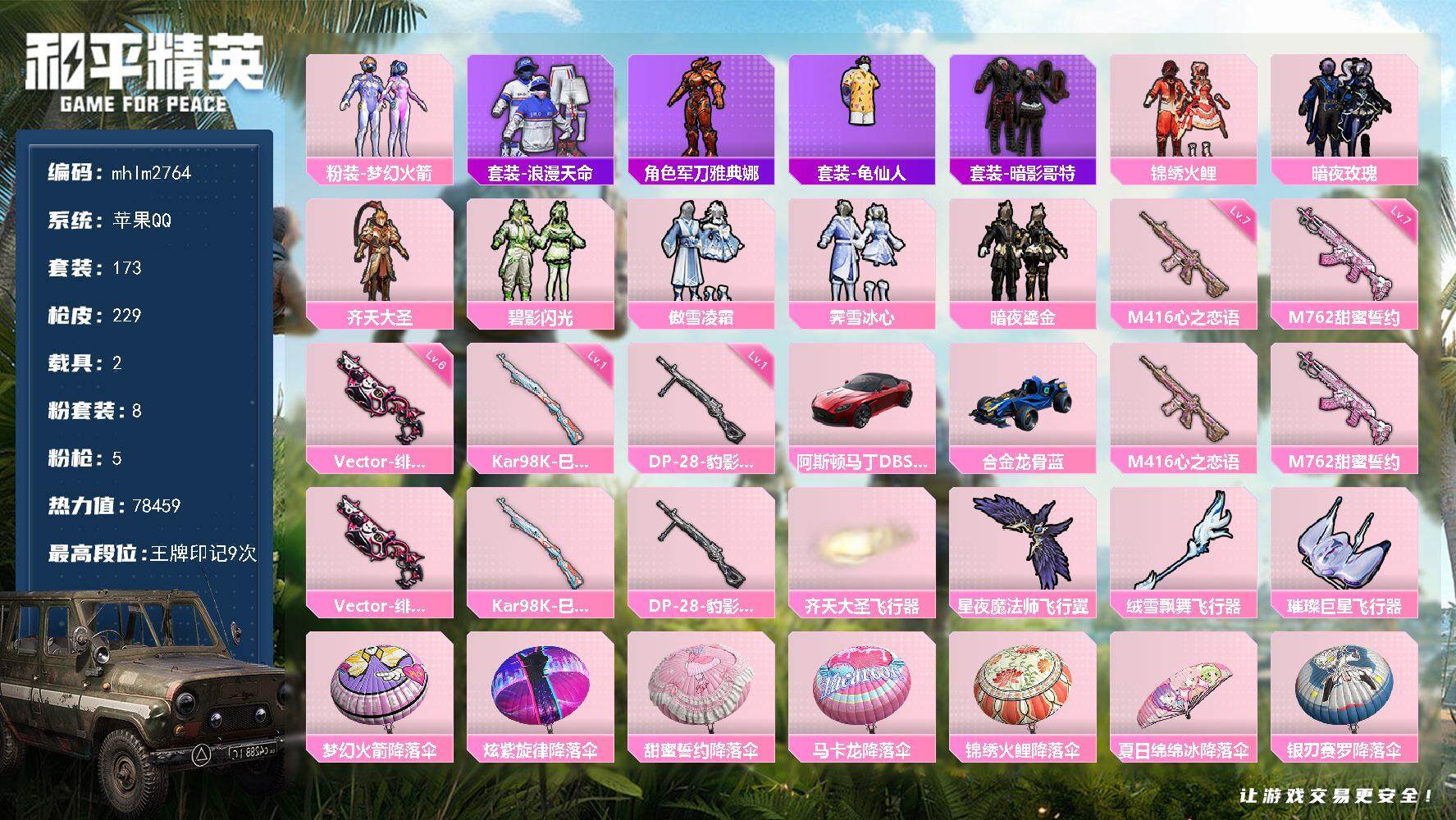 hs47279 苹果手Q-1王牌印记-3粉装-4特效枪-2载具-35465热力值-89套装-88枪皮