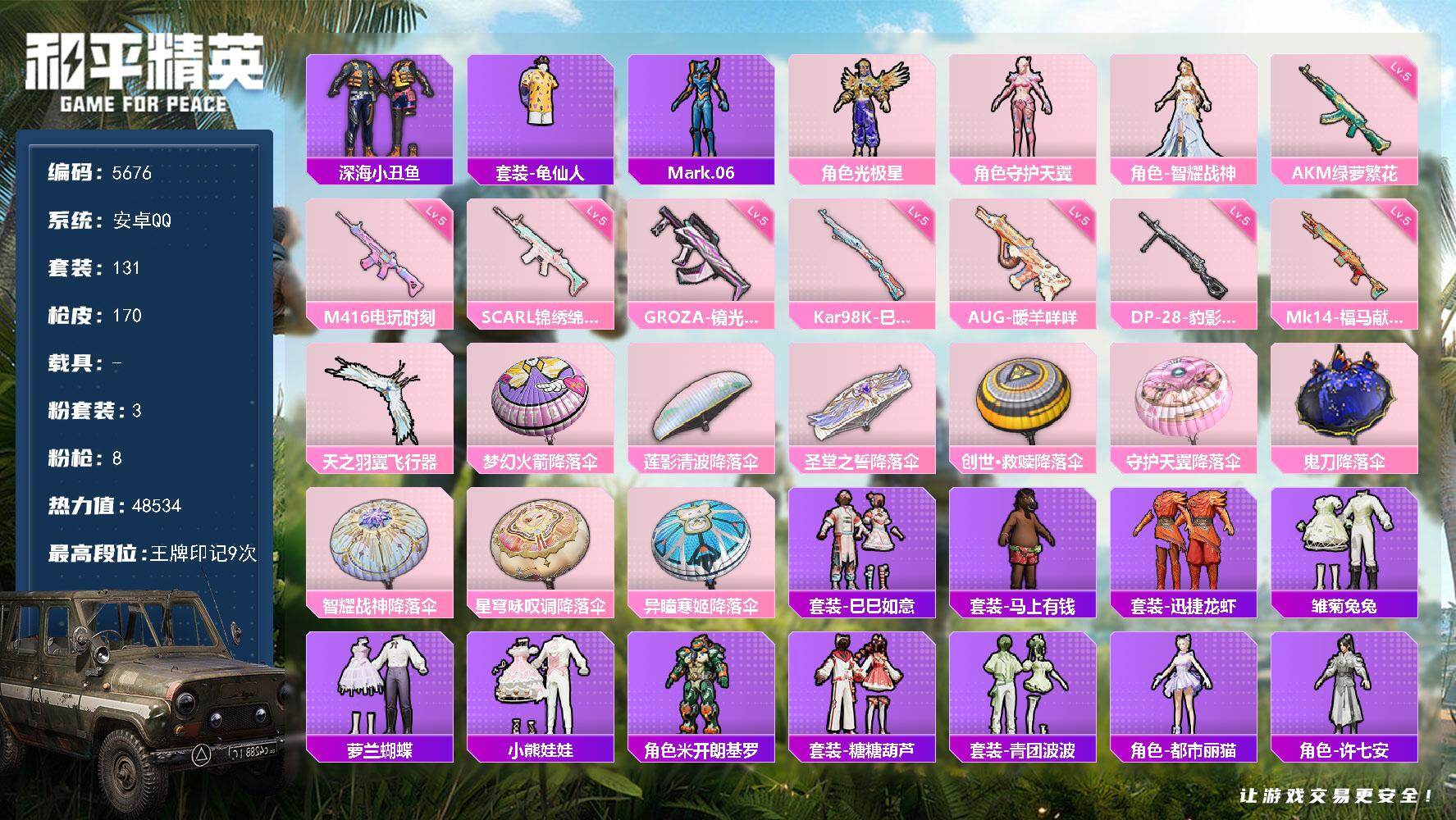 安卓 手Q-4粉装-7特效枪-0载具-0粉色飞行器-27035热力值-3王牌印记